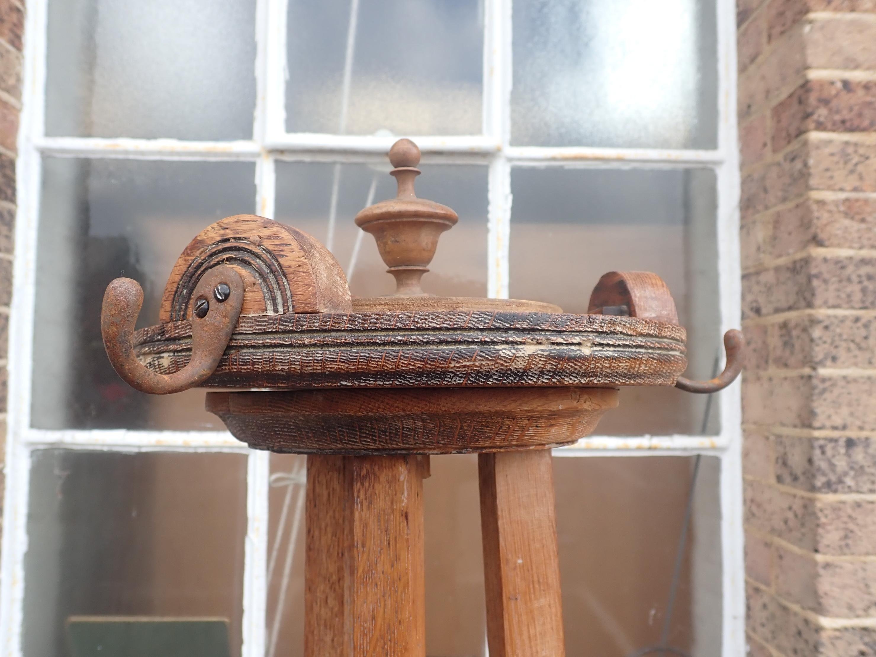 (top finial and hooks replaced) 193cm high, and a mahogany torchere, with tripod base, 136cm high (2)
