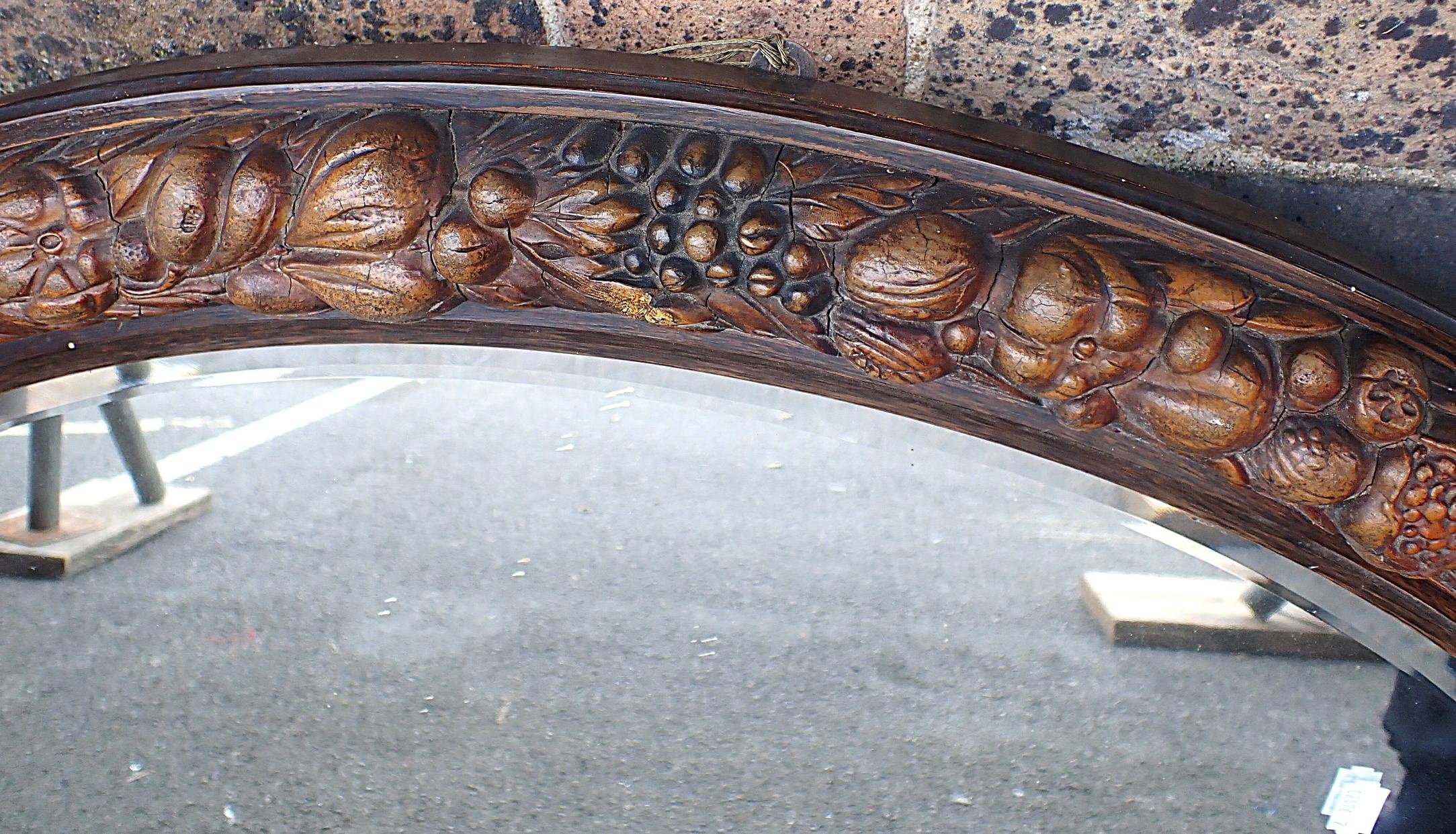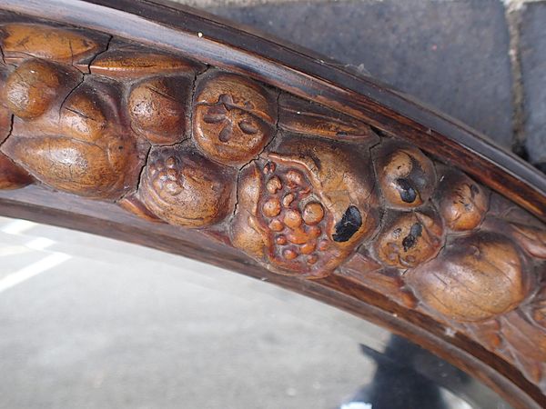 with cast fruit and foliage frame, and bevelled plate, 66 x 90cm