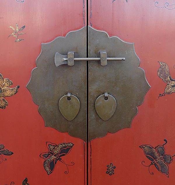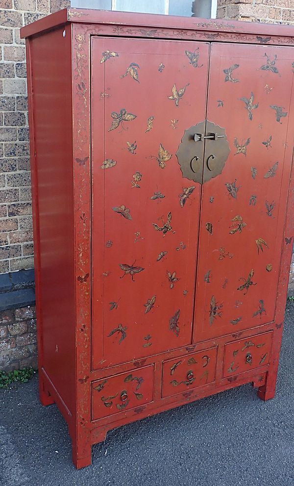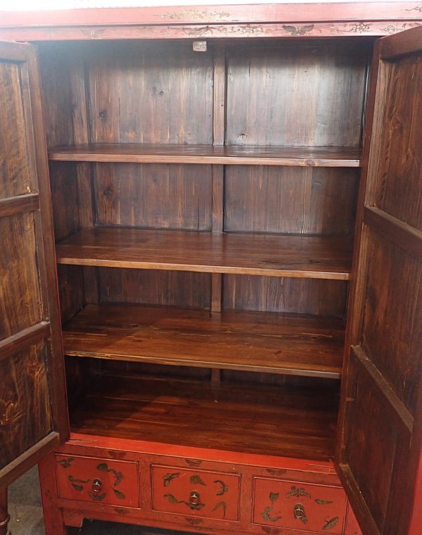 two doors enclosing shelves, over three drawers, 20th century in traditional style, 172cm high, 110cm wide, 50cm deep