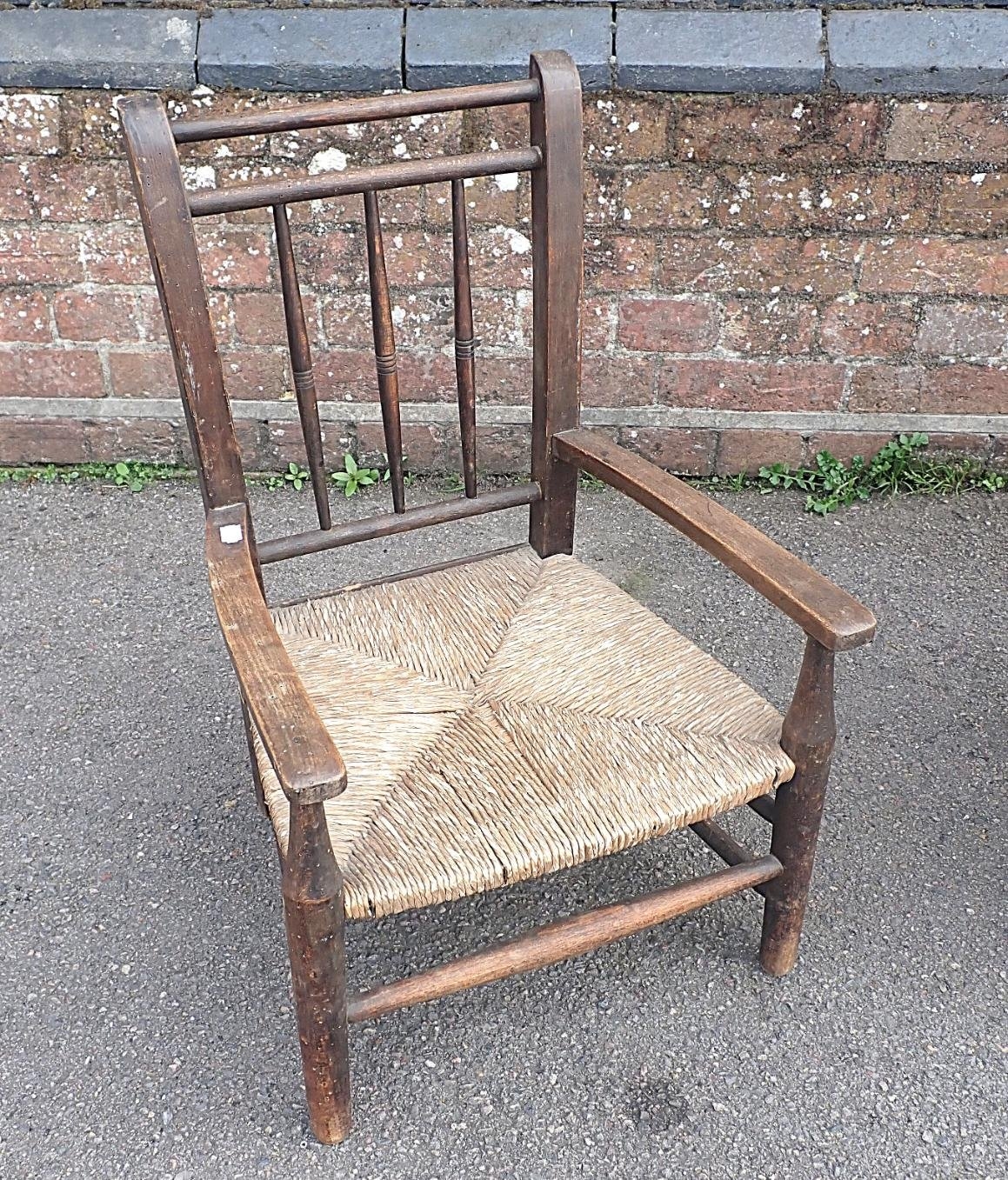 with boarded seat and vase splat, and a rush-seated child's chair (2)