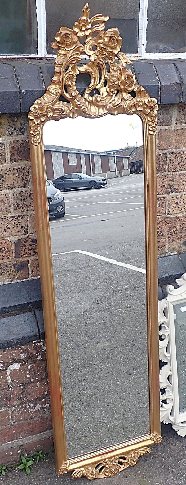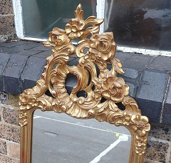 A GILT LONG WALL MIRROR, IN ROCOCO TASTE