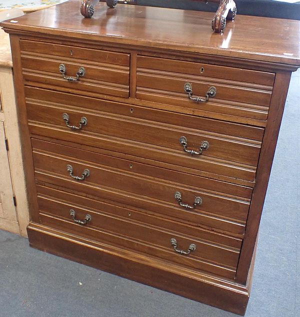 A LATE VICTORIAN WALNUT CHEST OF DRAWERS