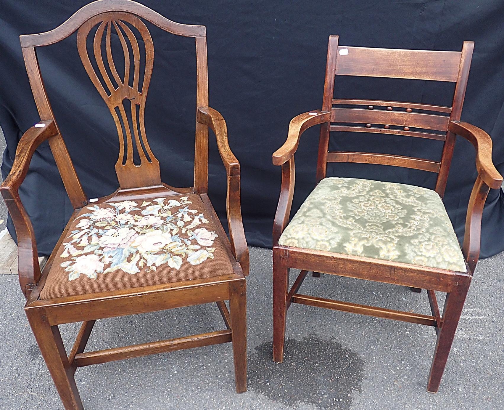 with figured vase splat (with charming historic repair), and two early 19th century country armchairs (3)