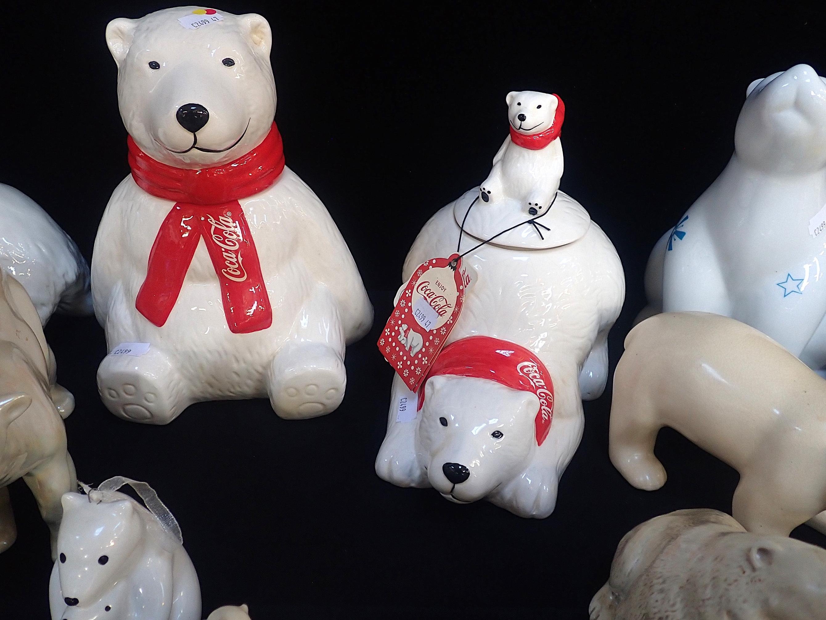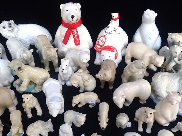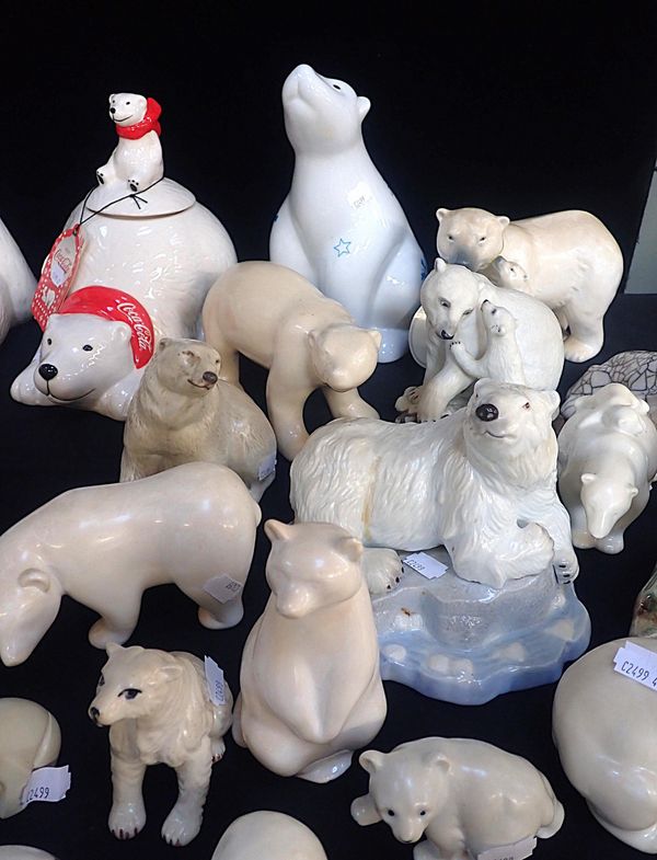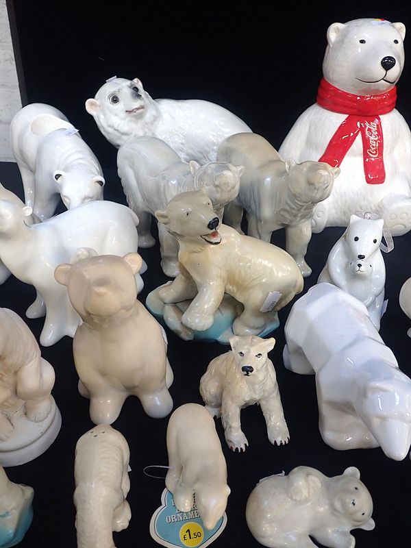 comprising various examples including a piggy bank, two Coca-Cola bears, and figures stamped 'USSR', the largest 24cm high (some nicotine deposit)