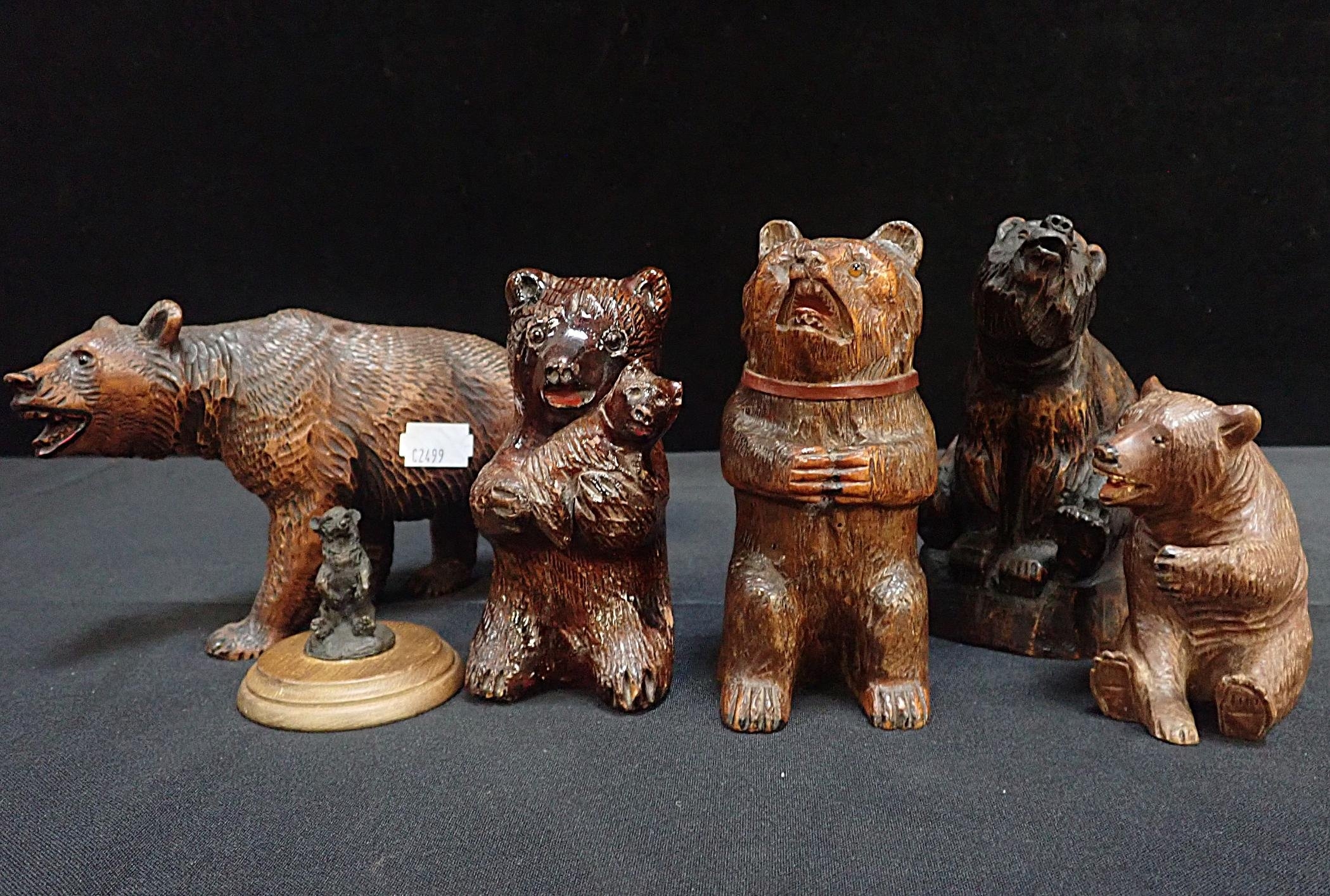 A GROUP OF FIVE BLACK FOREST STYLE WOODEN BEARS