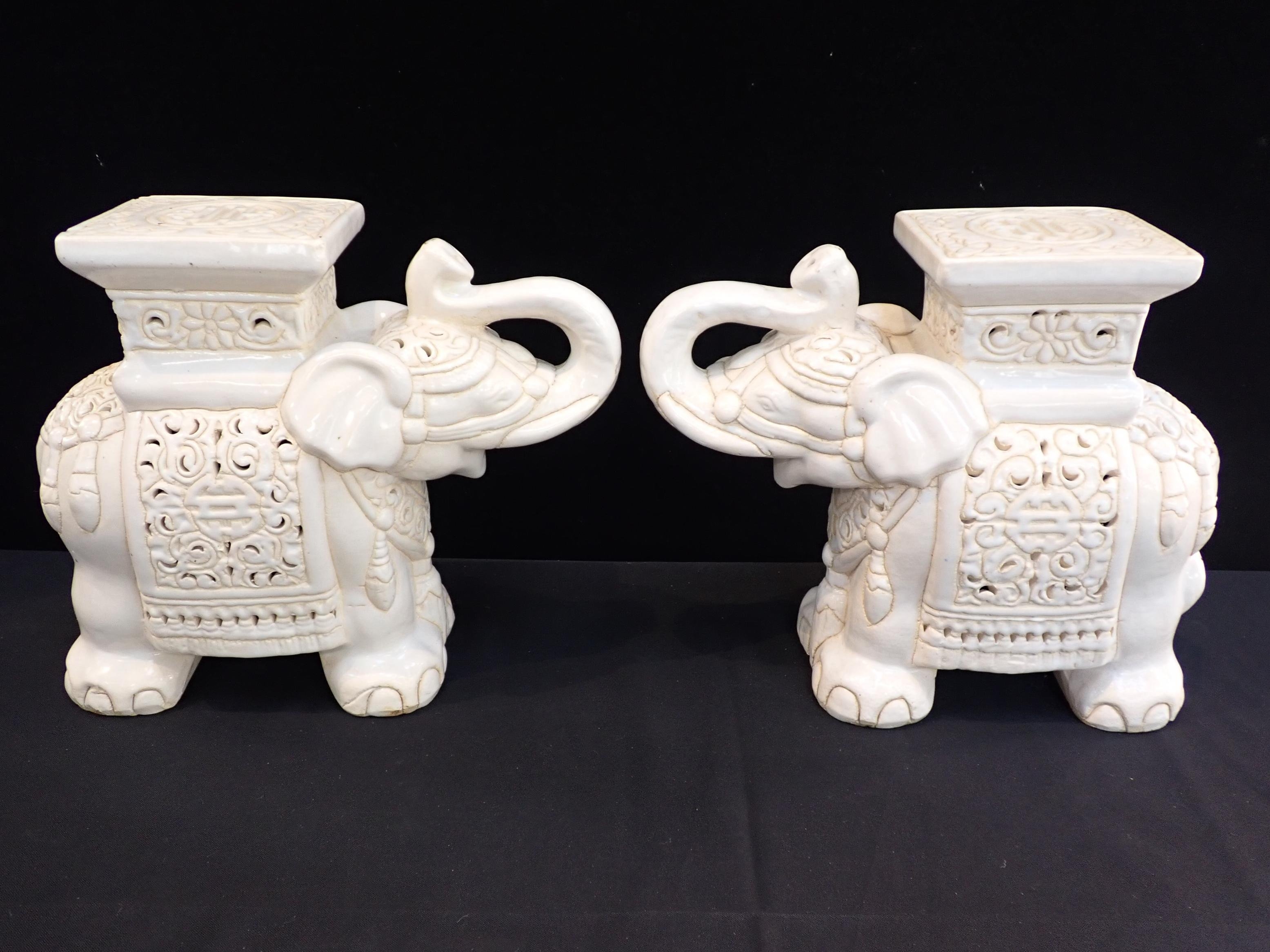 A PAIR OF CHINESE CERAMIC ELEPHANT SEATS