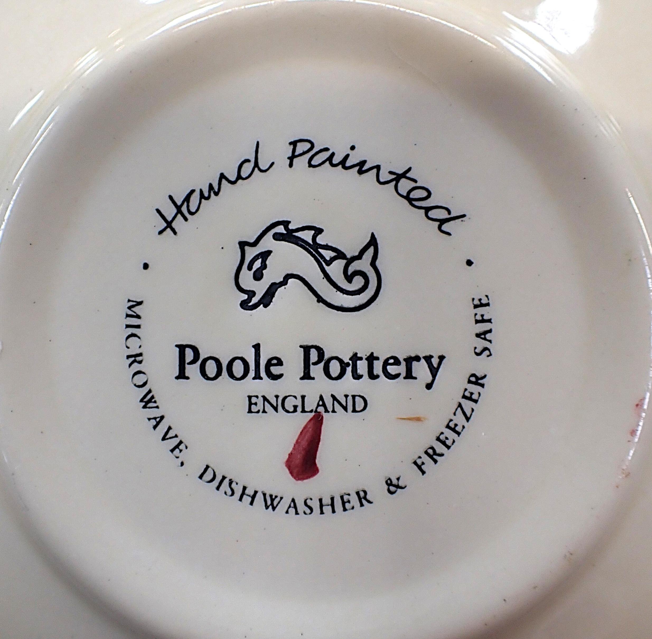 produced by Poole for Harrods 1970s, this service bought in 1978 from the Poole Pottery shop; 8 settings, including oval dish, oval plates, square serving dishes, covered dishes, ramekins etc (as photographed) (some signs of use)