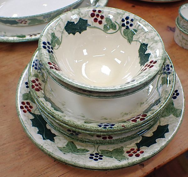 A POOLE POTTERY 'WINTER VINE' SPONGEWARE CHRISTMAS DINNER SERVICE