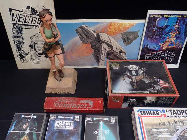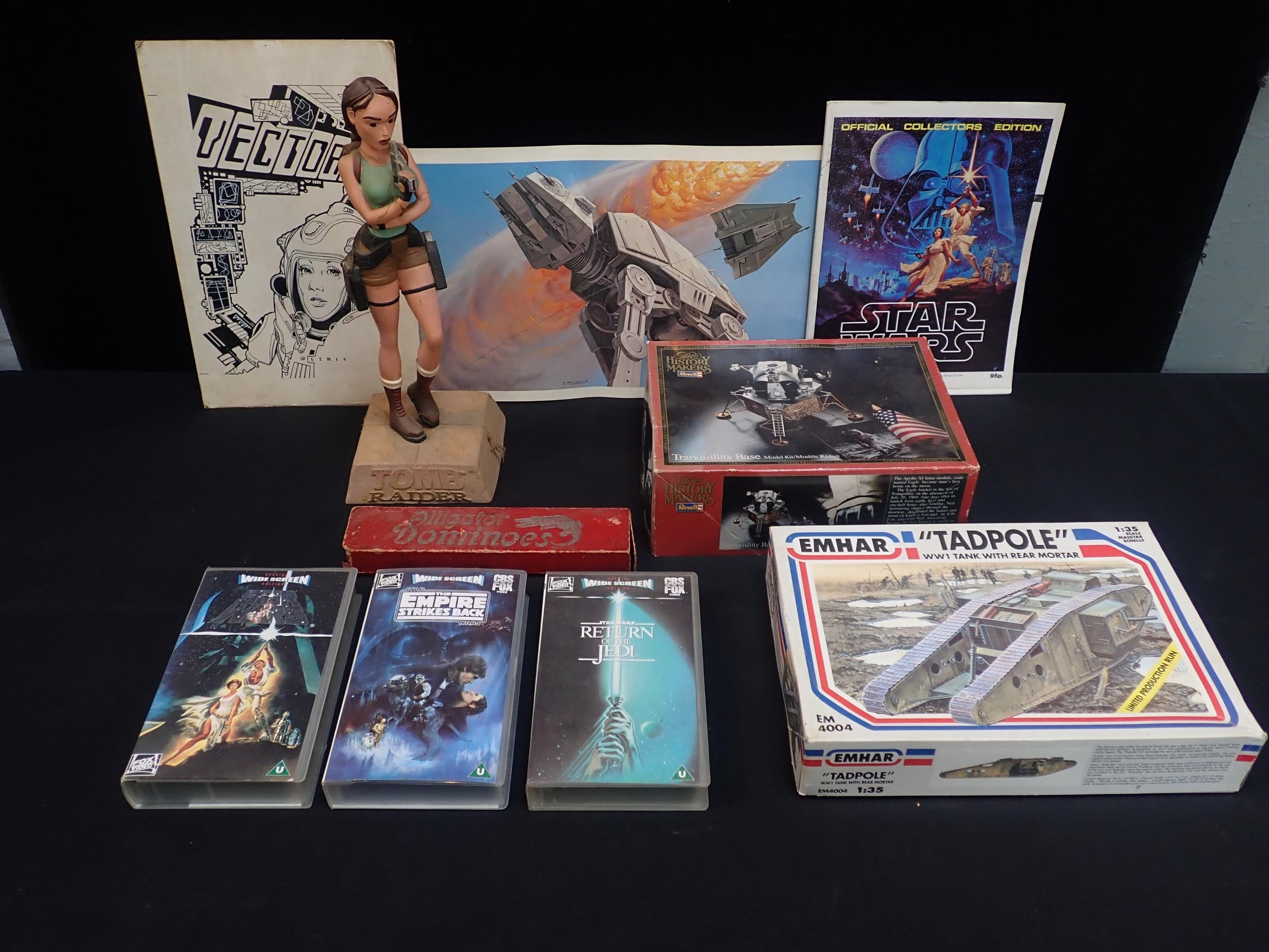 With Lara Croft figure, two model kits and other Star Wars items. (10)