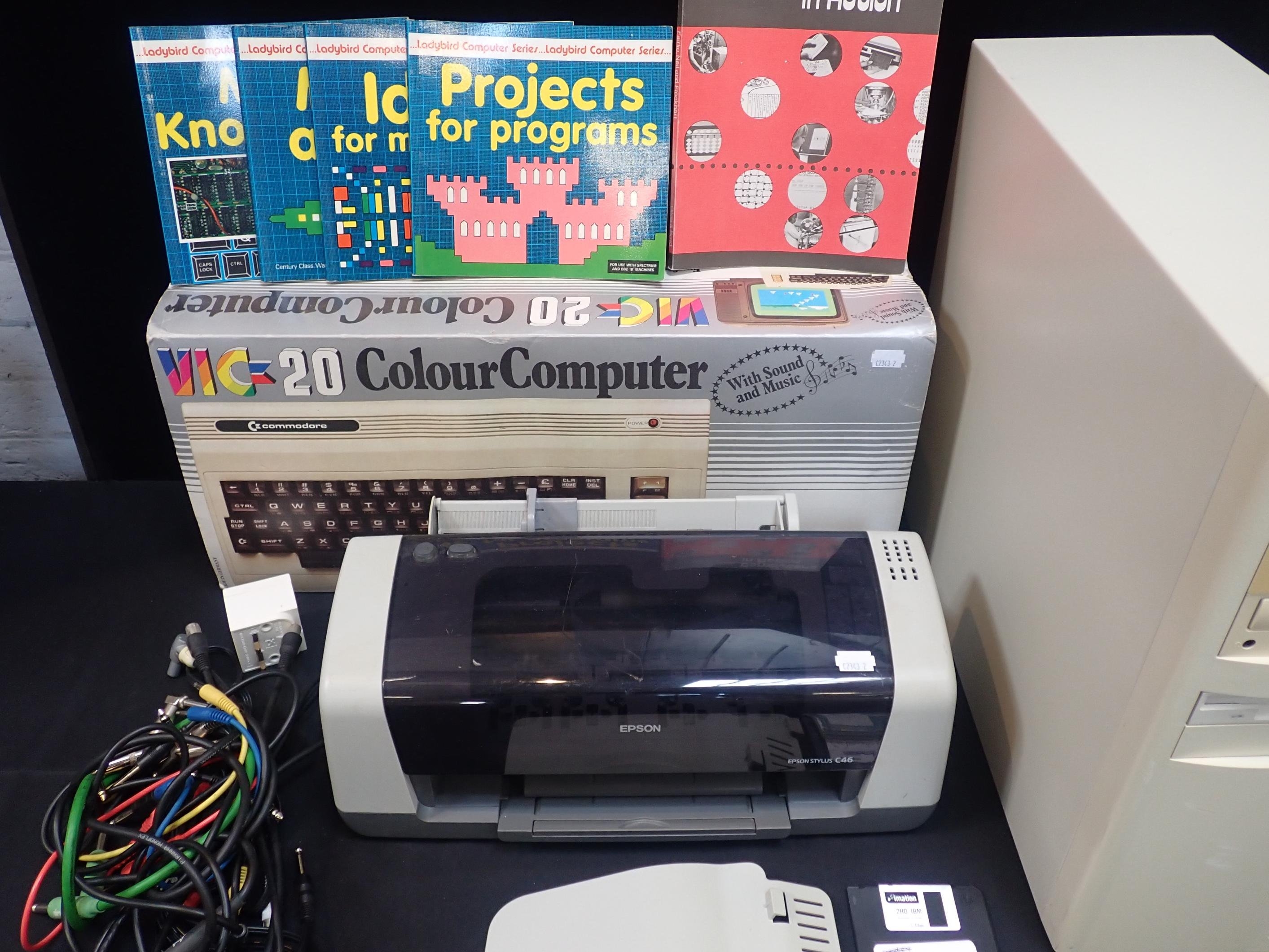 Commodore keyboard, Epson printer and desk top tower unit, with cables. (untested)
