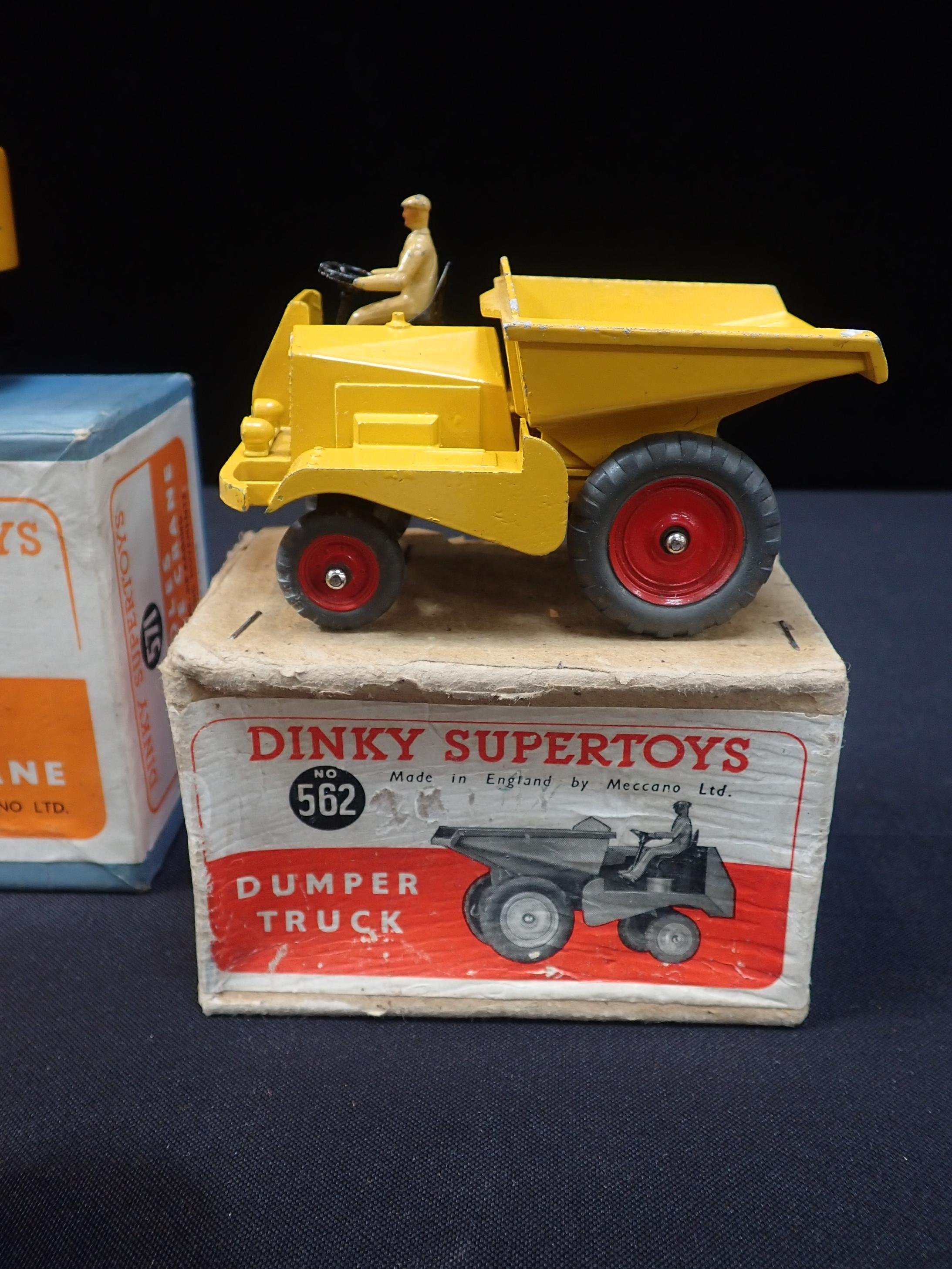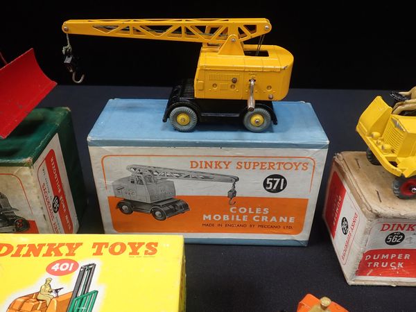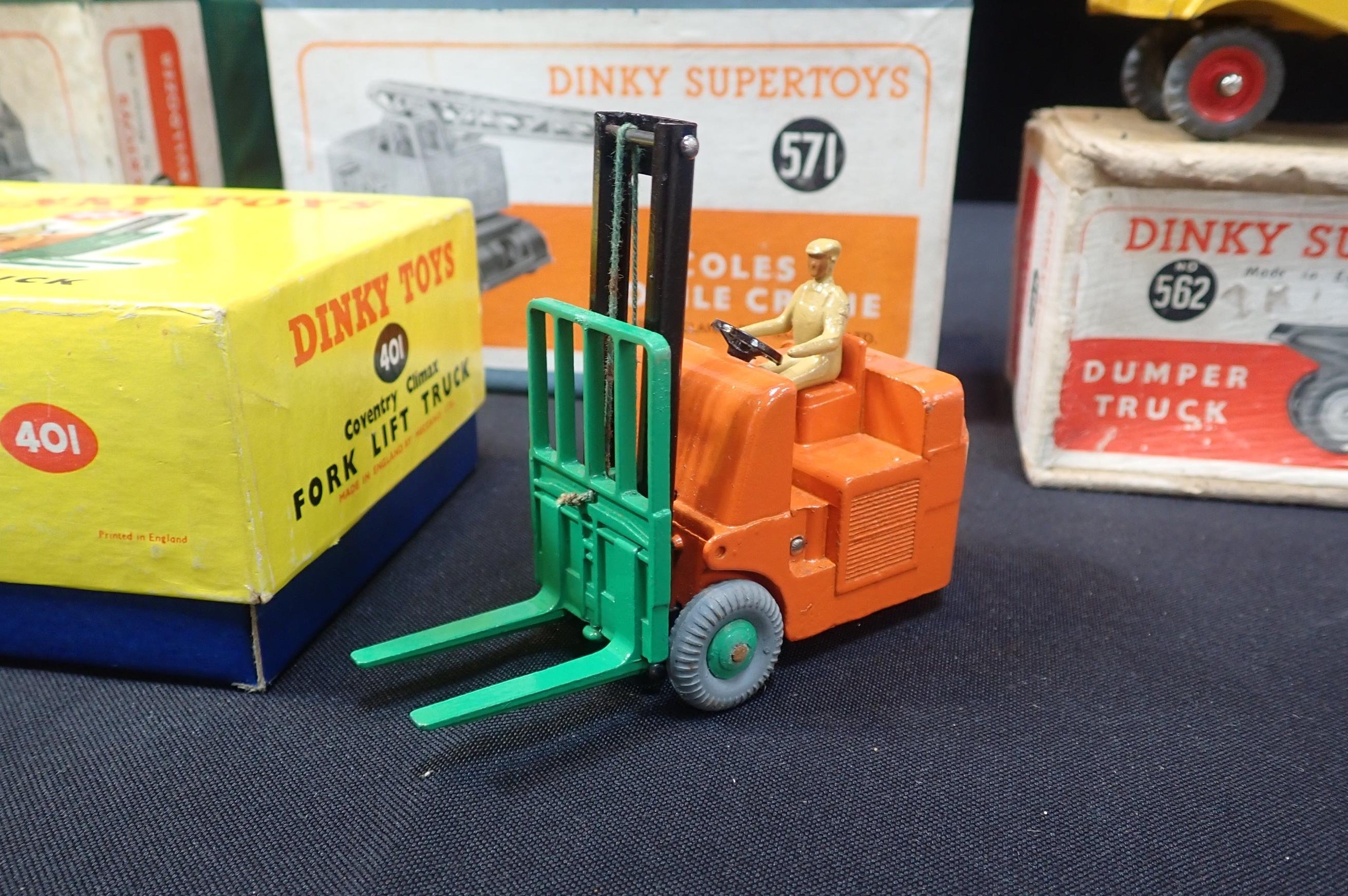 No.401 'Fork Lift Truck', No.571 'Coles Mobile Crane', No.561 'Blaw Knox Bulldozer' and No.562 'Dumper Truck', all in original boxes (4)