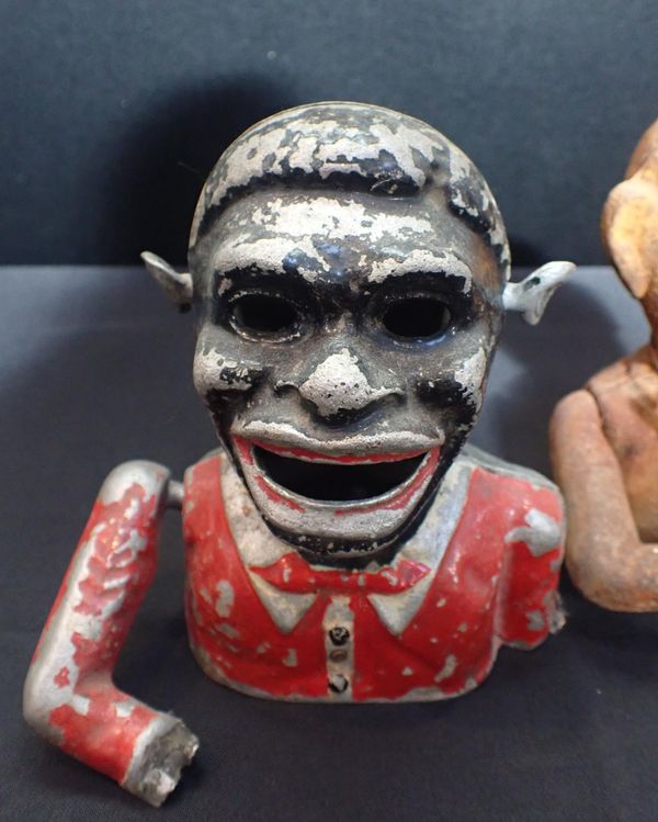 a caricature African-American (rusted paint), and a similar aluminium example (a/f) (2)