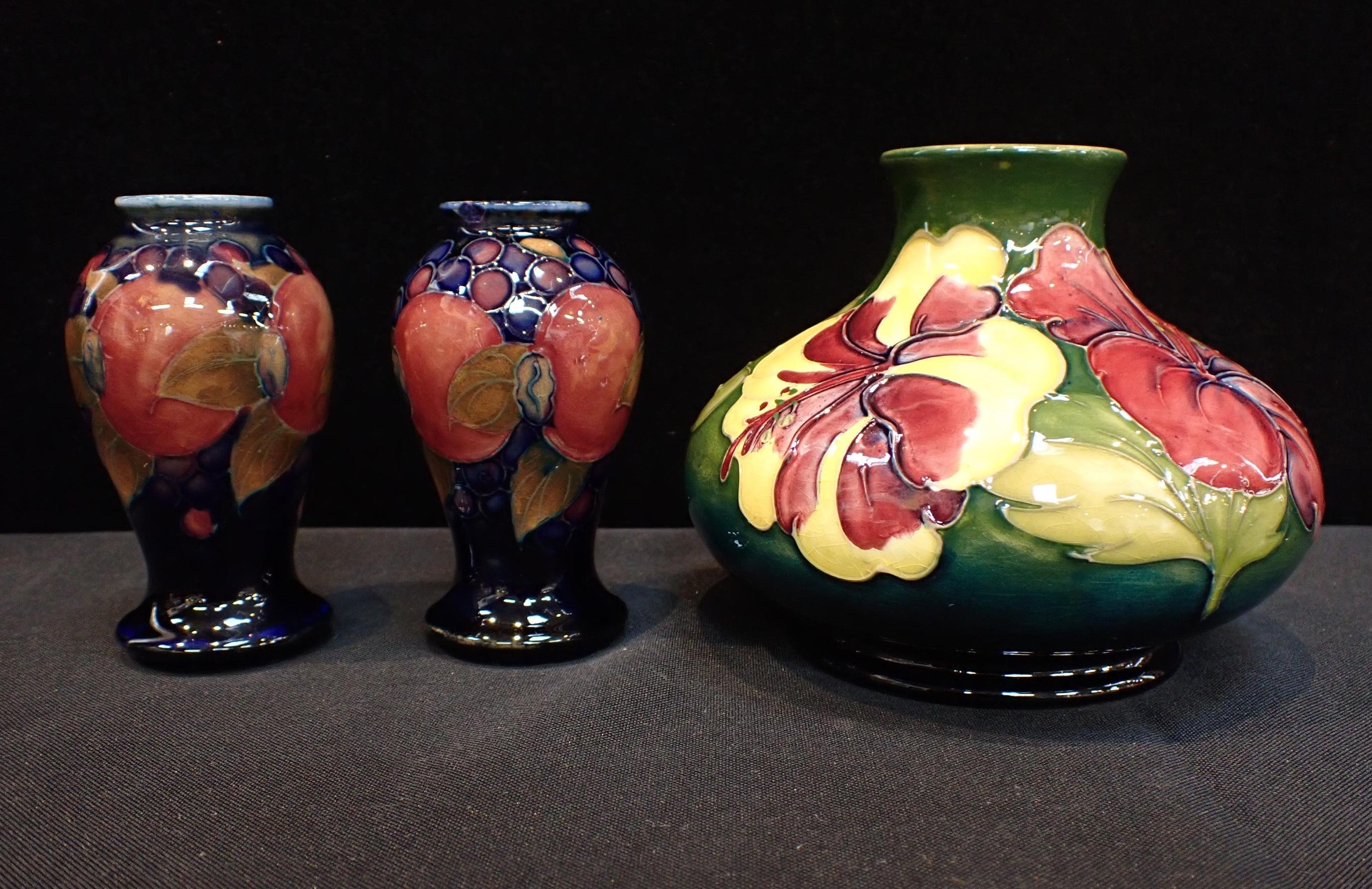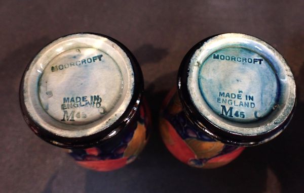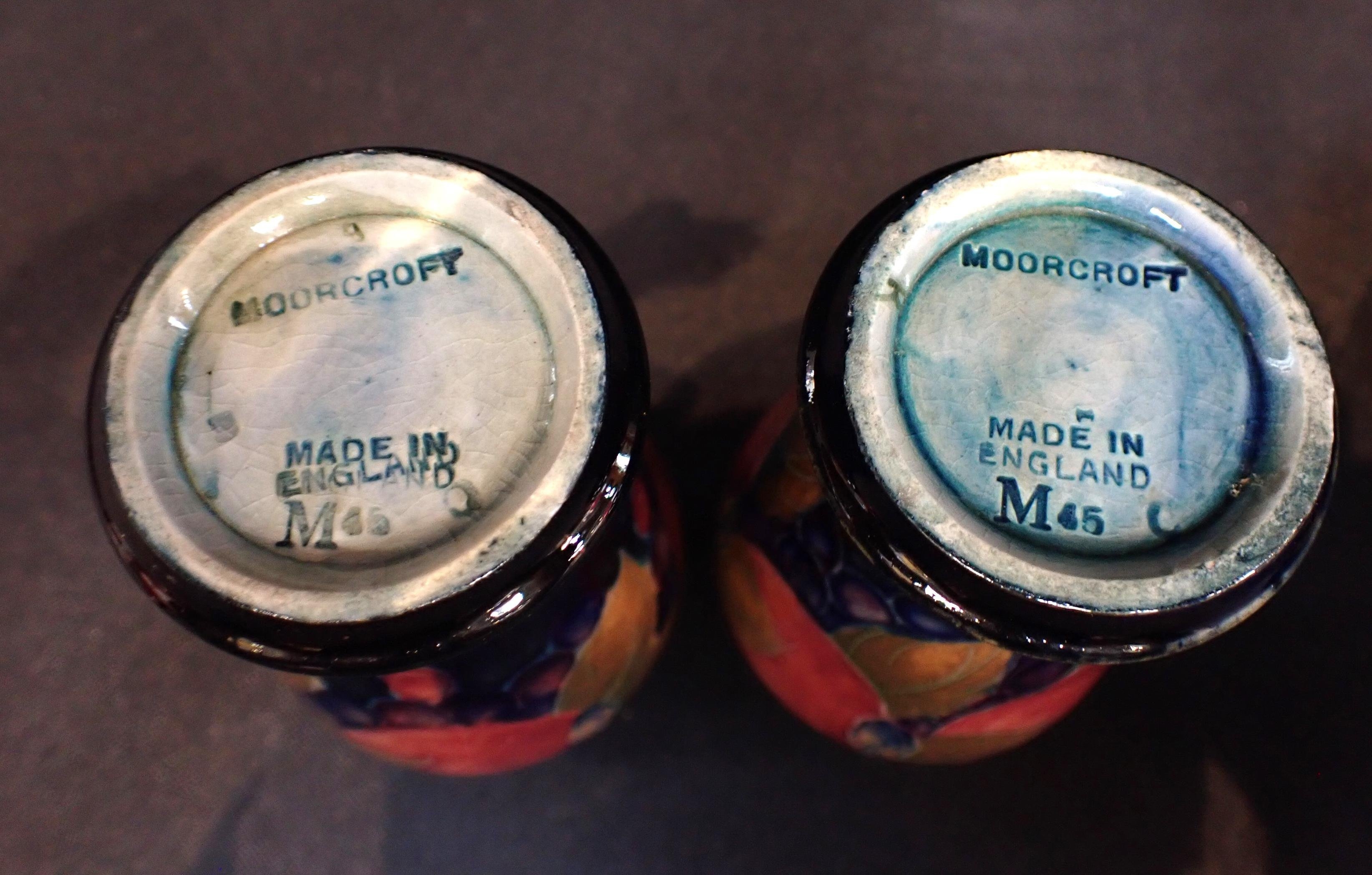 MOORCROFT: A PAIR OF SMALL POMEGRANATE VASES