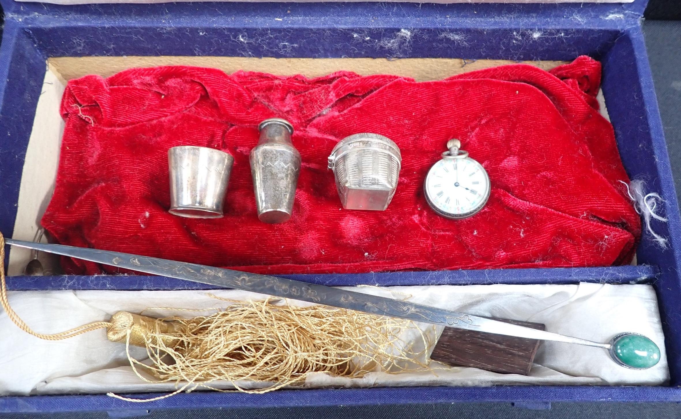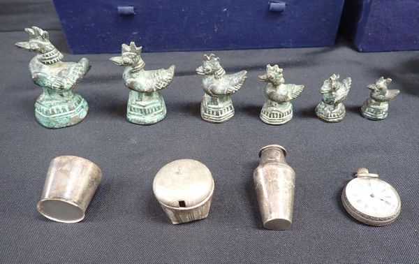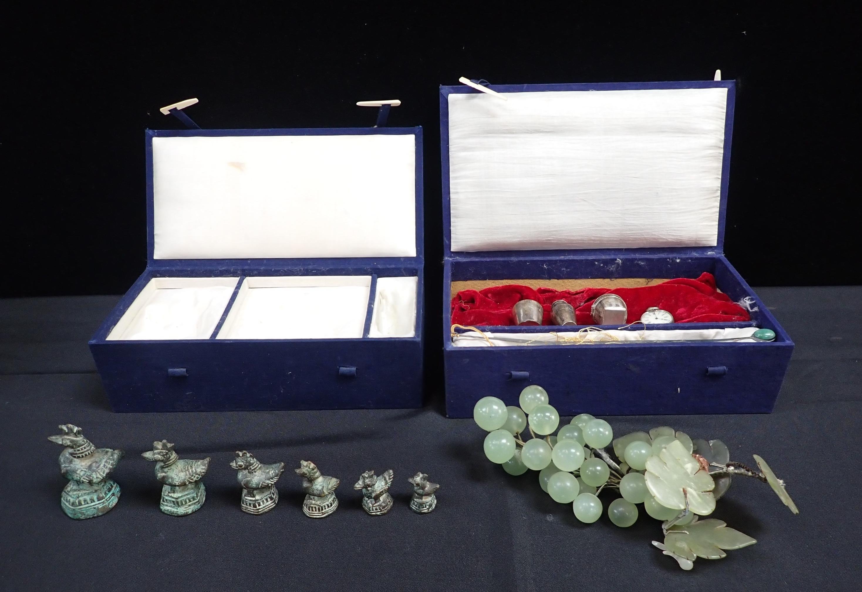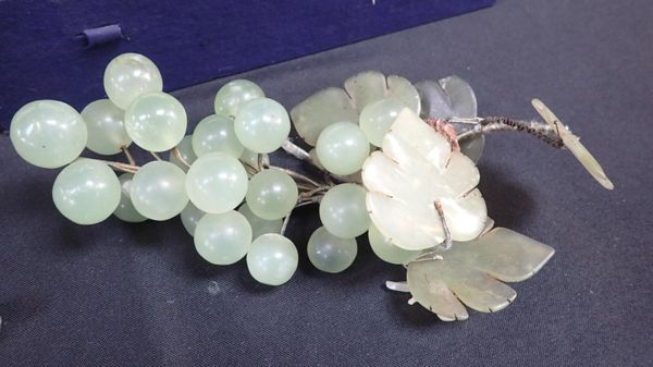 a 'jade' bunch of grapes, white metal items and a pocket watch (a/f)