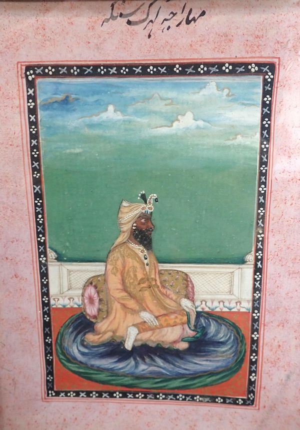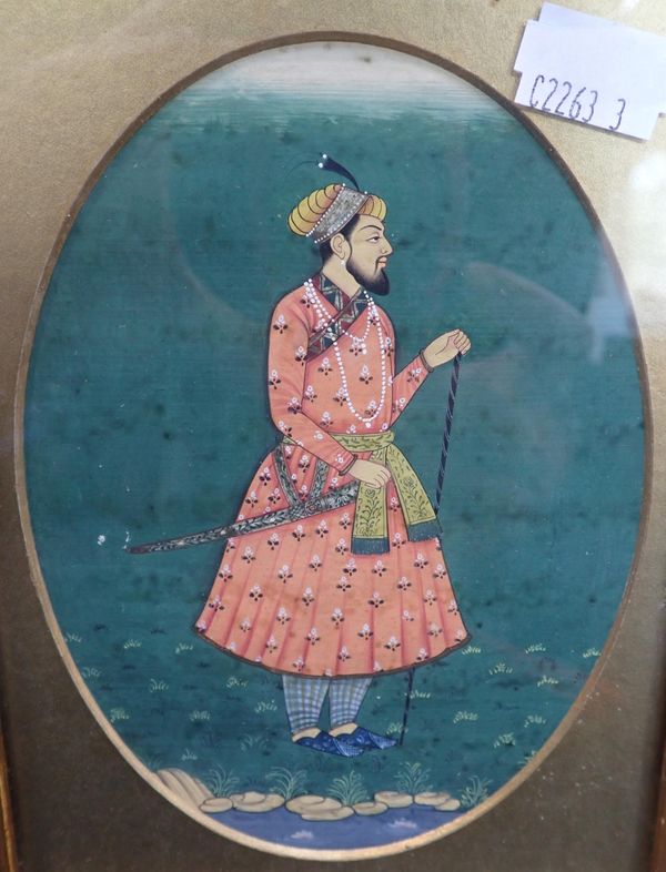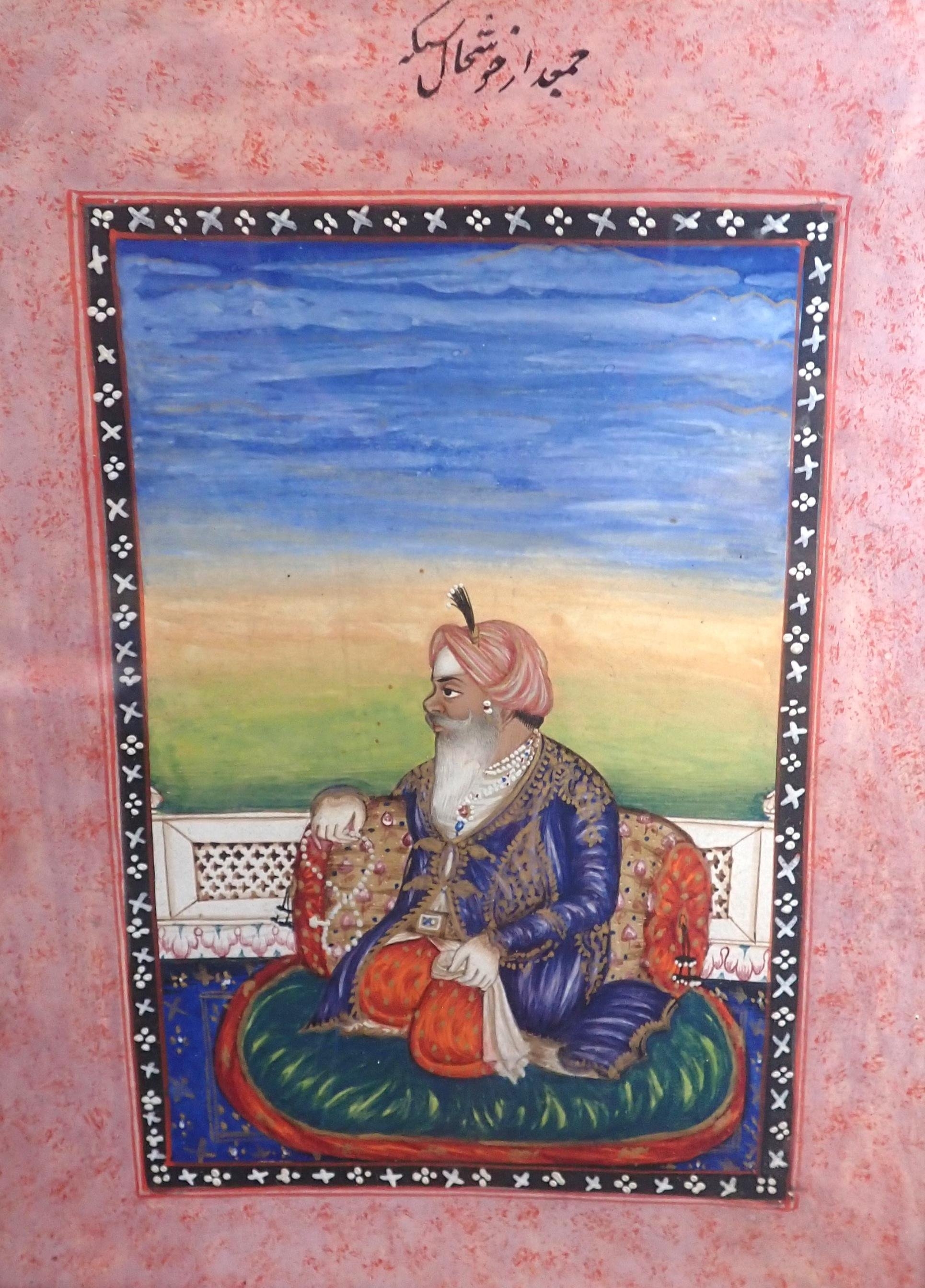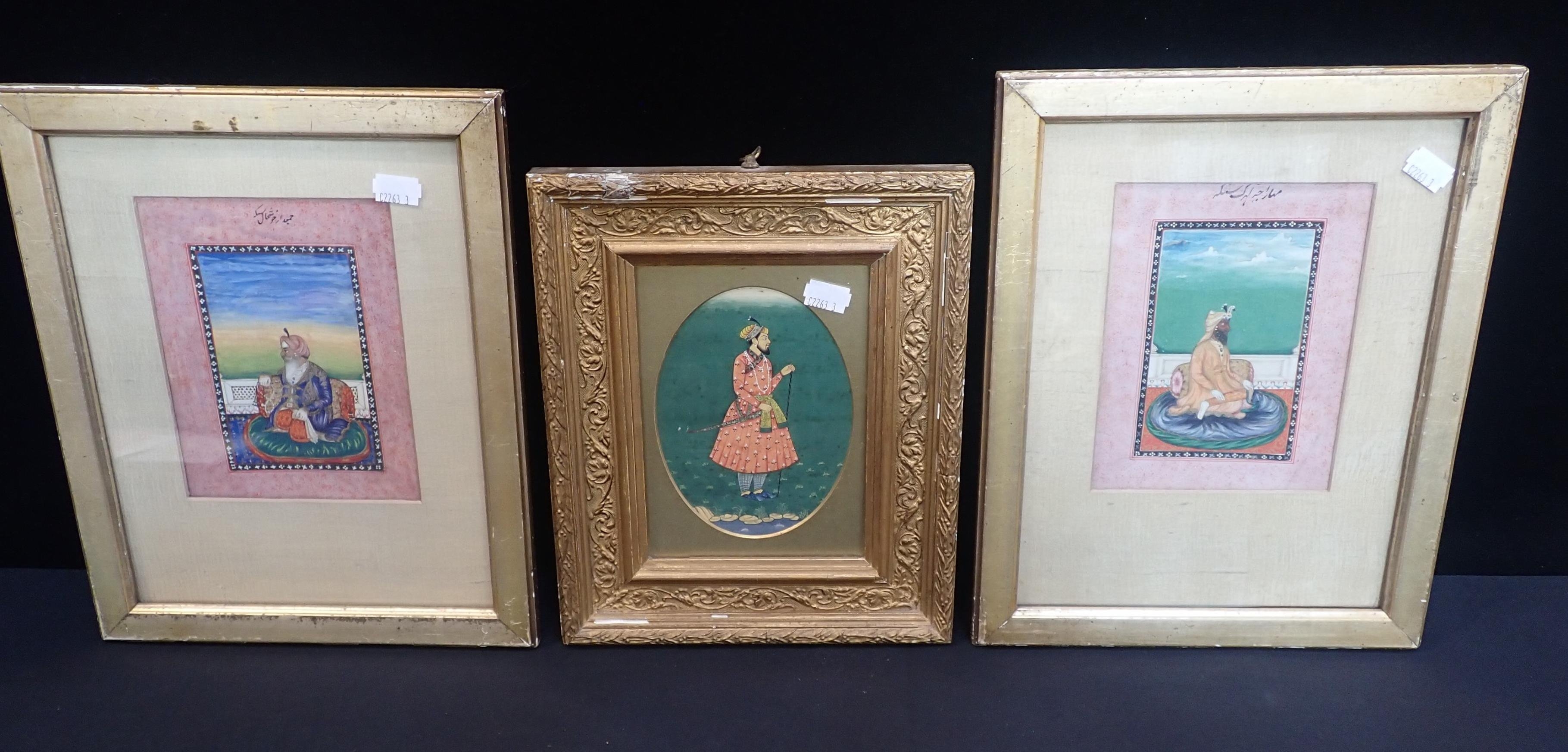 with pearl necklace, sword and a cane 23 x 28cm, with two others of seated Indian gentlemen