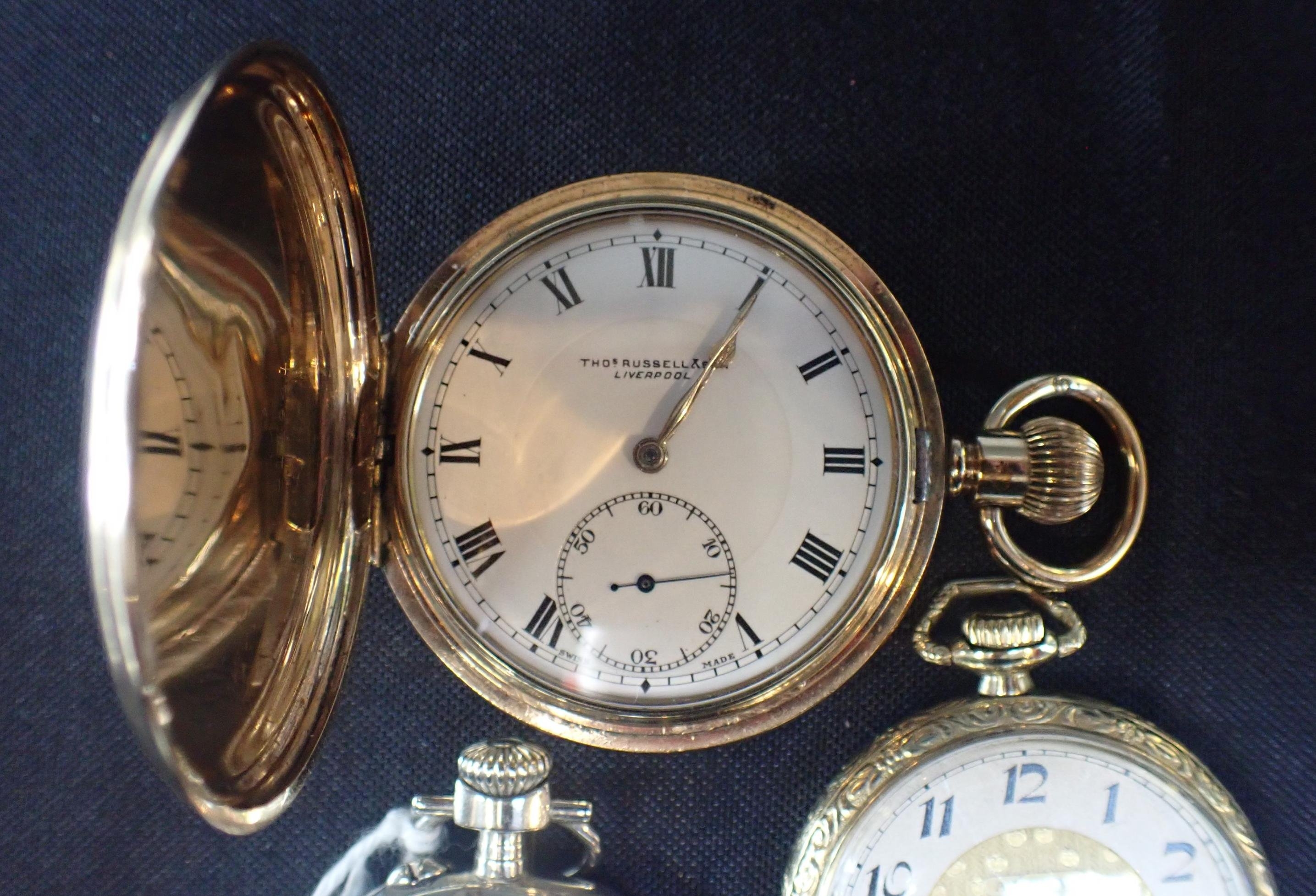 THOMAS RUSSELL OF LIVERPOOL GOLD PLATED FULL HUNTER POCKET WATCH