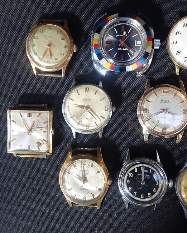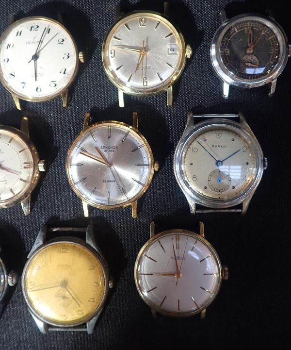 with manual wind movement, a grey dial, silver batten numerals, silver luminous hands and a red second hand, with multi-coloured rotating bezel, along with a quantity of other wrist watches