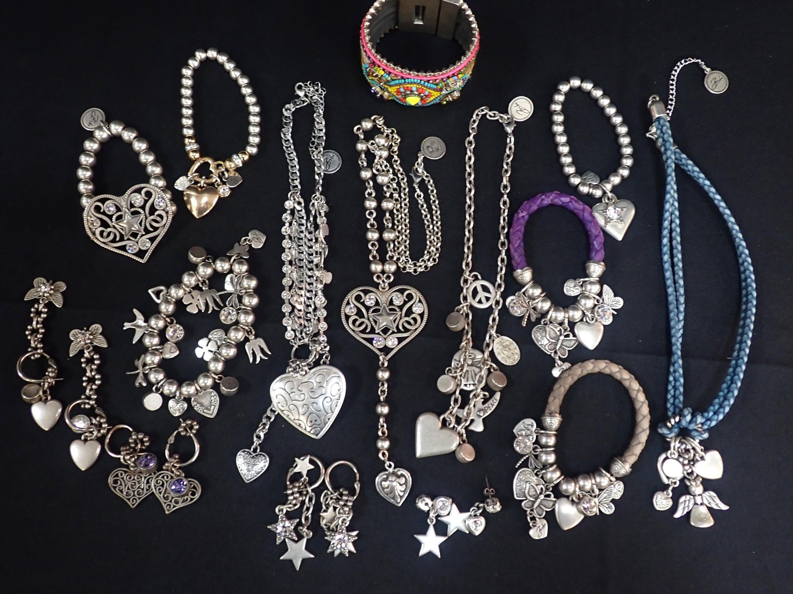 including a wide beaded, woven and jewelled bangle, necklaces, bracelets, and earrings
