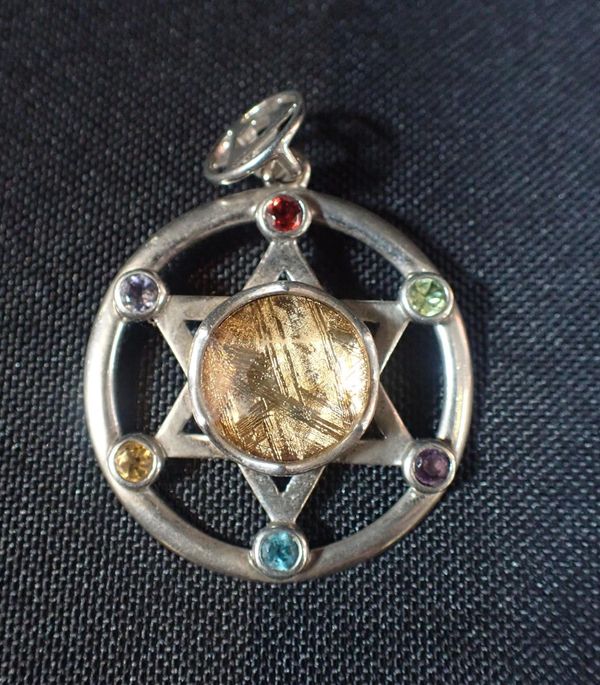 two star pendants stamped 18k GP, and another white metal pendant (4)