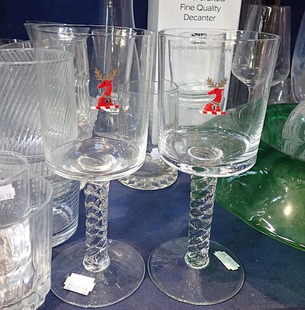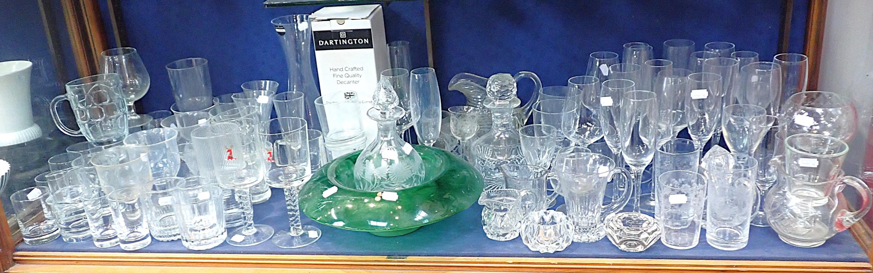 including a Dartington carafe, a 1930s green glass bowl, etc