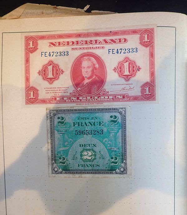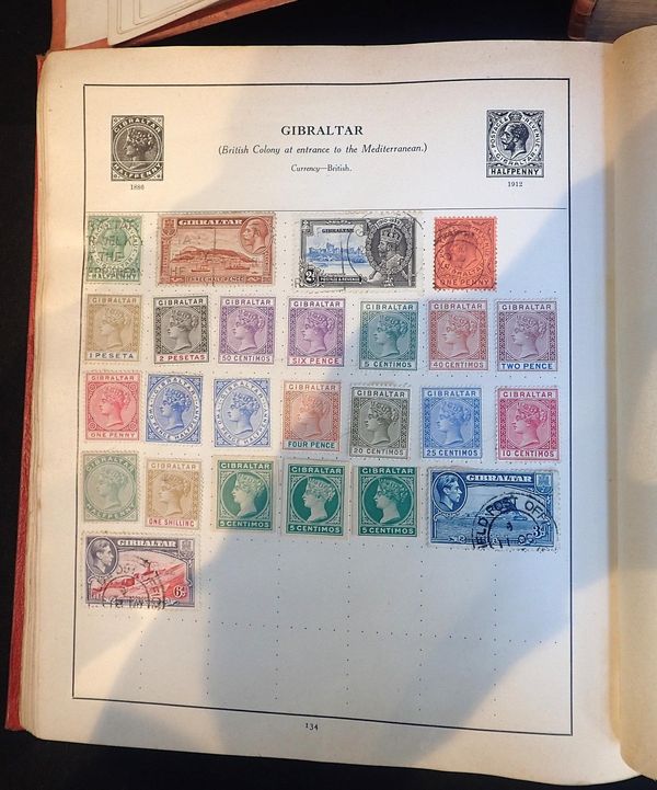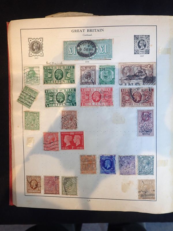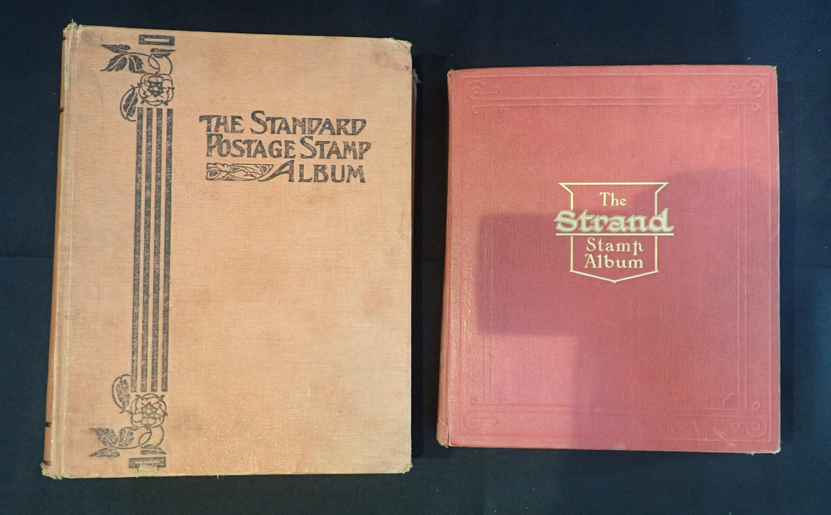 comprising a ‘Standard’ album and a well filled ‘Strand’ album, including all world mint and used, note GB 1891 £1 green, Kings with Seahorse values, some useful Commonwealth, USA 1892 Columbus 50c used, also some banknotes with China, Japan and Germany.