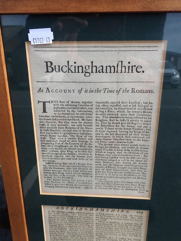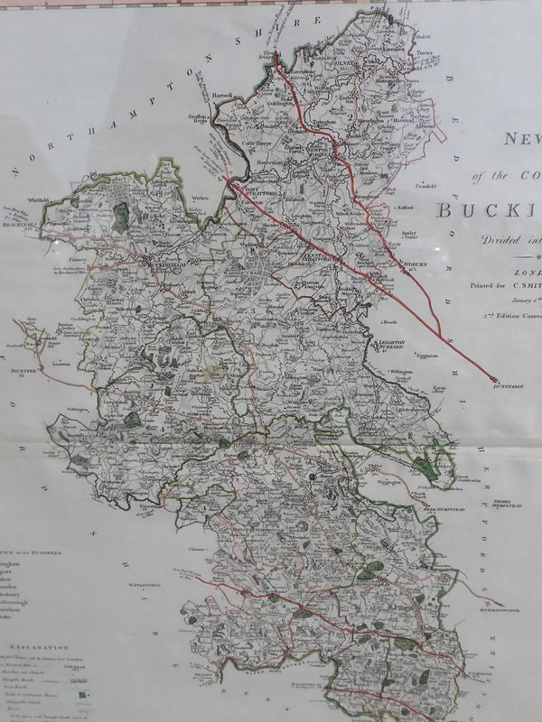 C Smith, Strand, 1808 revised edition, with framed history of Buckinghamshire