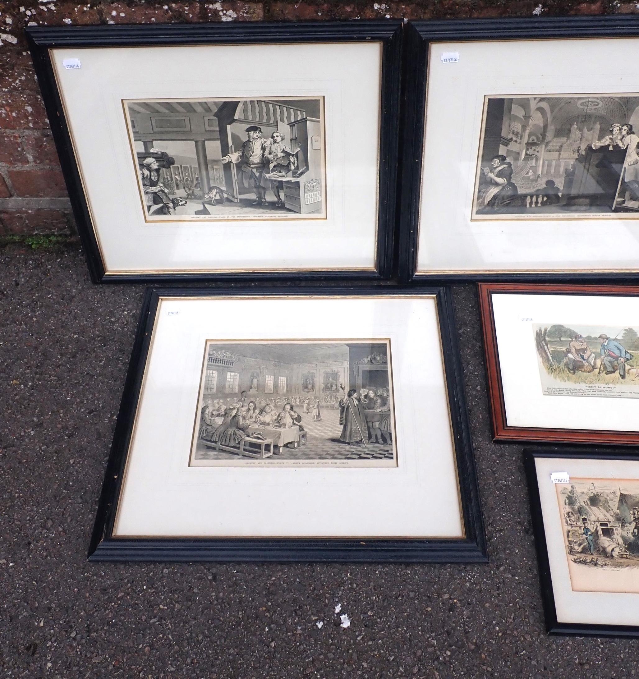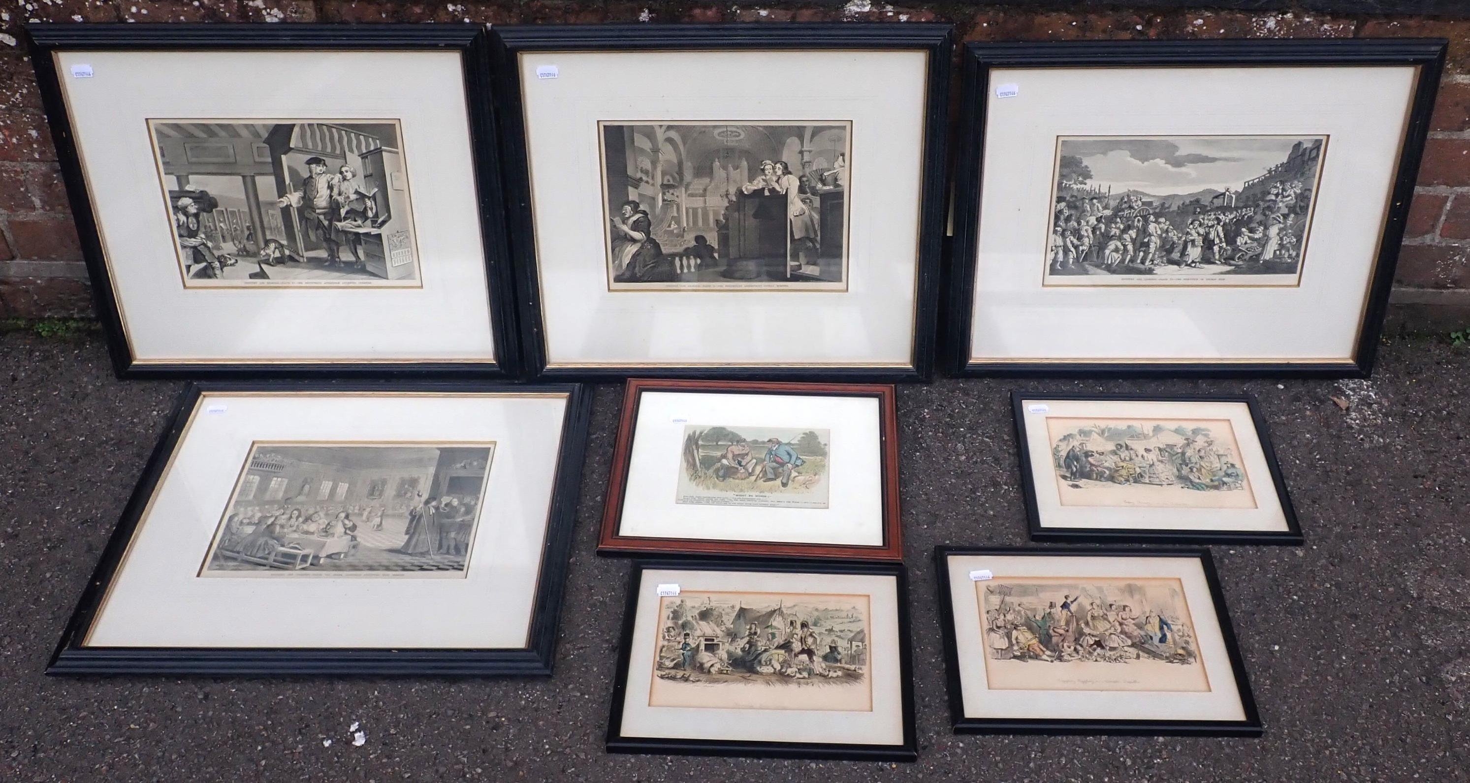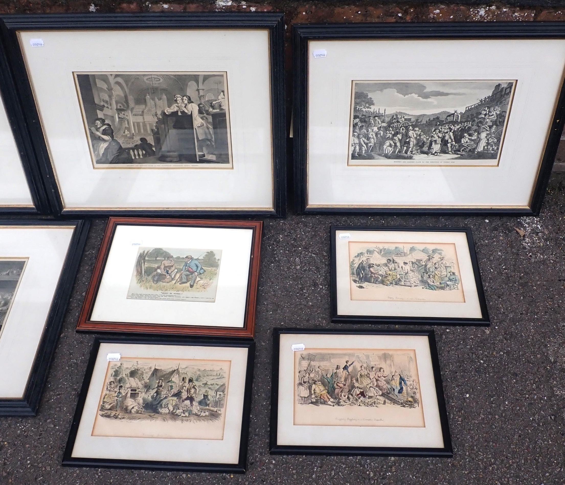 Four 19th century prints from the series, with three John Leach prints and a fishing cartoon