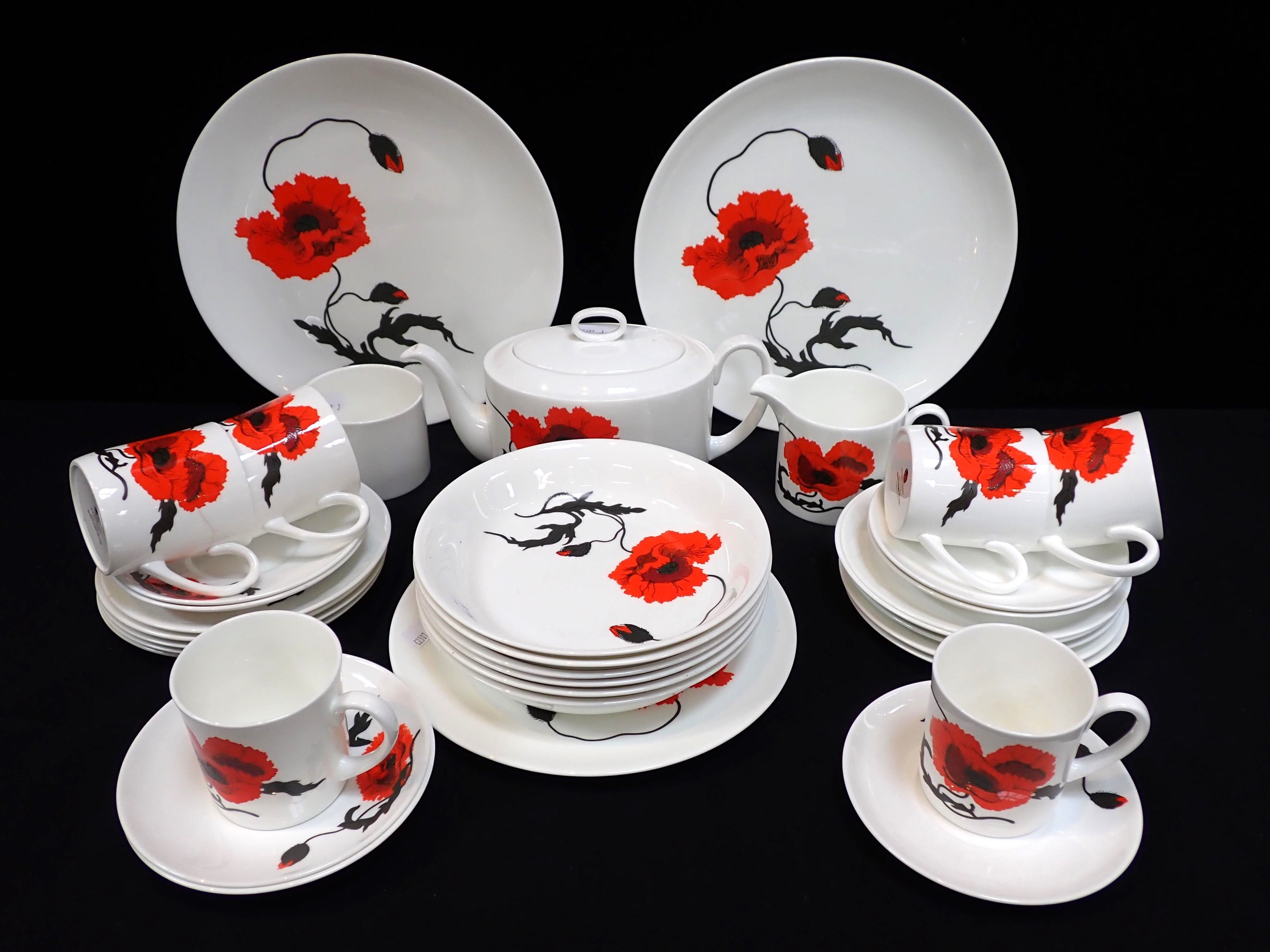 (teapot rim a/f), and six matching bowls