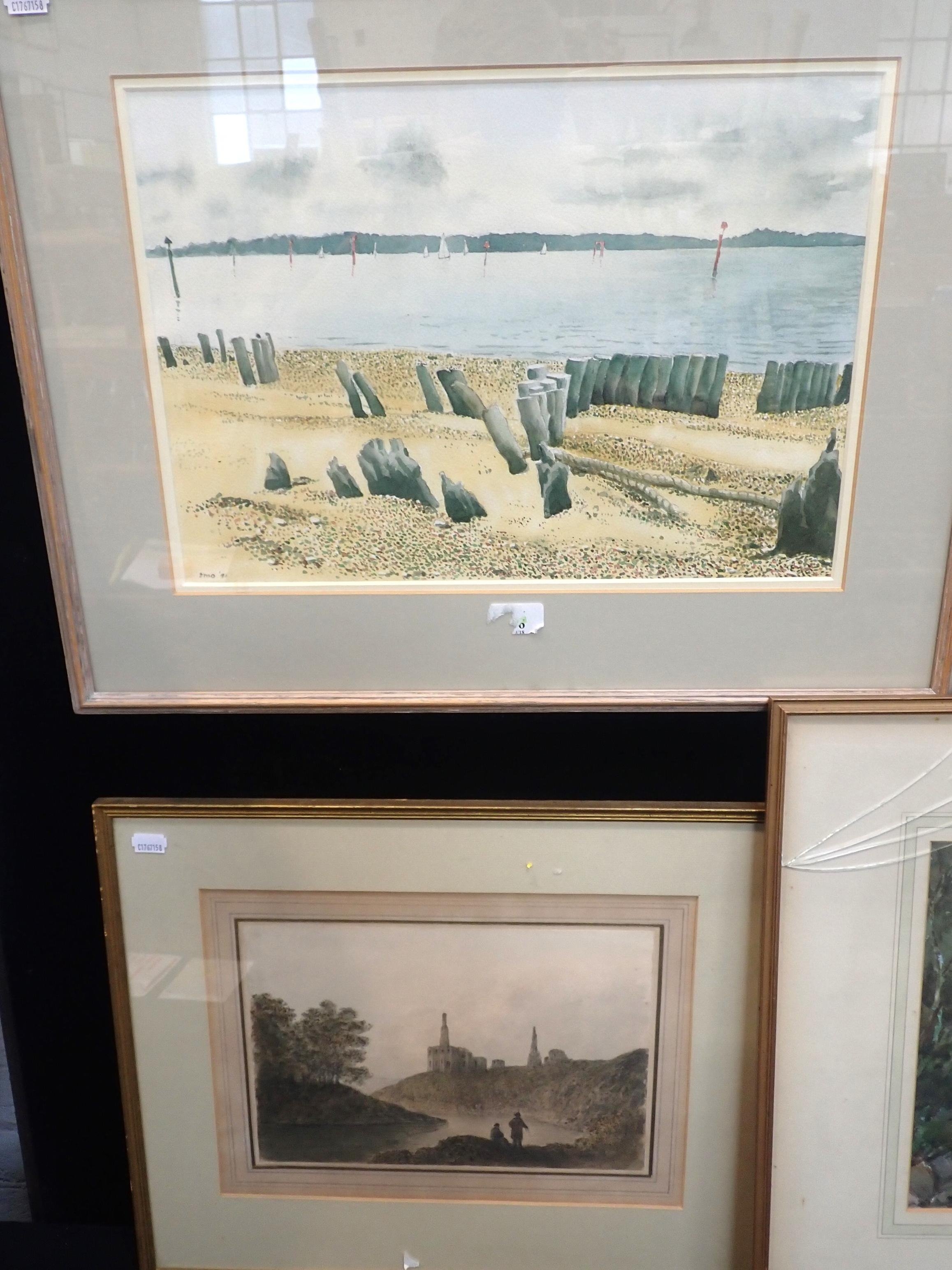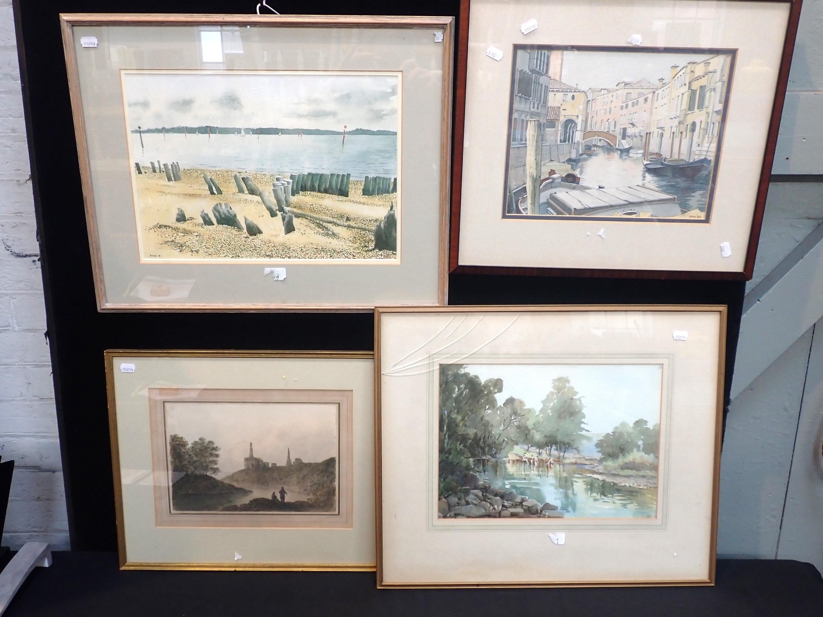 watercolour, 59cm wide, with three other watercolours, two signed 'Orno'