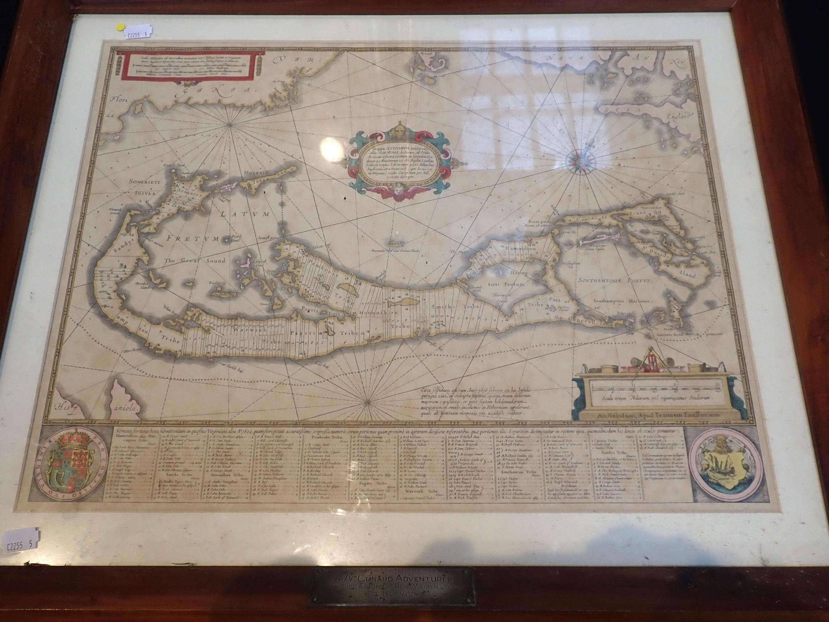 framed, with presentation plaque, 'presented to M/V Cunard Adventurer, on the occasion of Her maiden voyage to Bermuda...1972', 54 x 66cm, with three framed prints (4)
