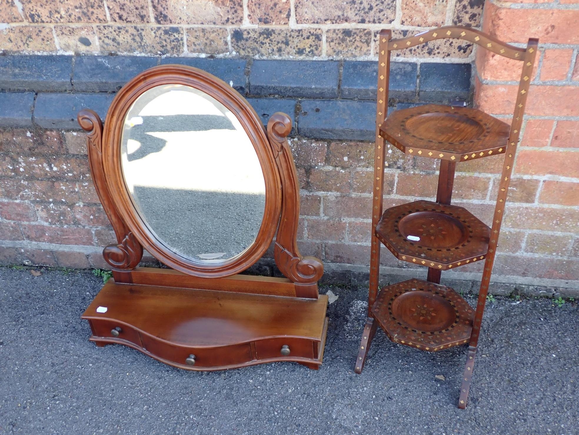 with oval plate and three drawer base, and a three-tier Persian style inlaid cakestand (2)