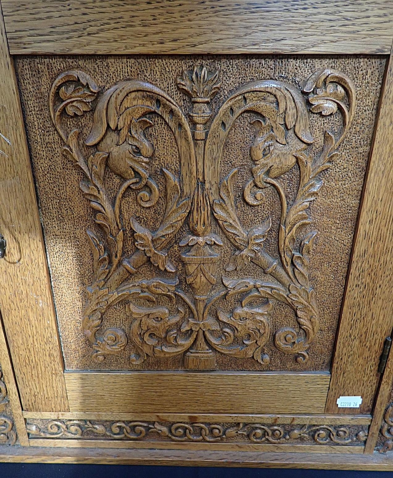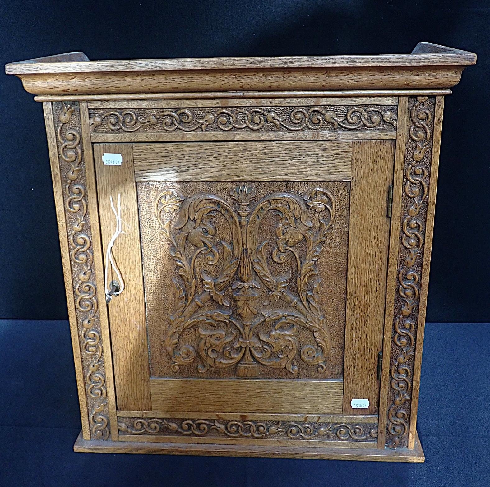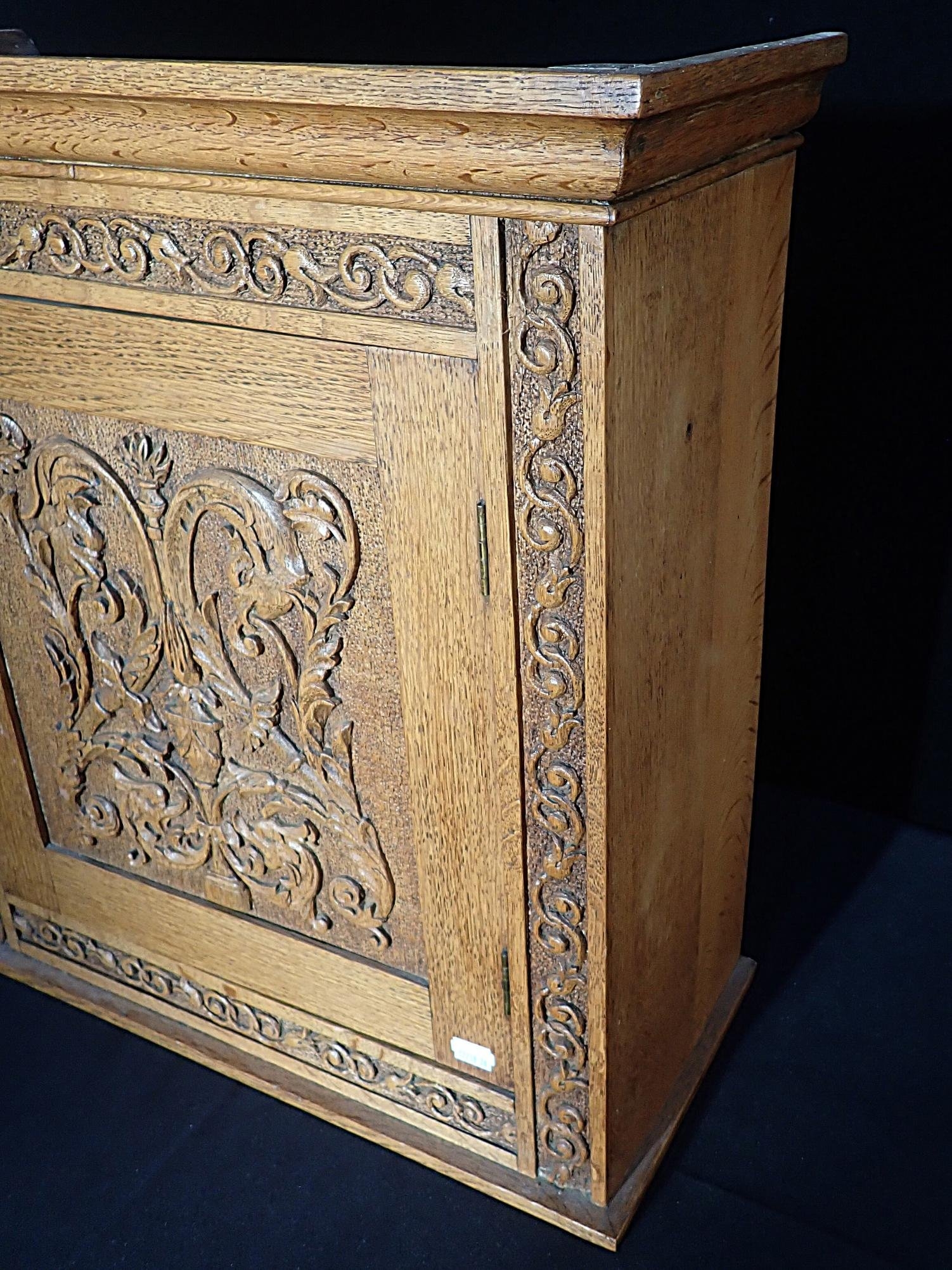 the interior fitted with a drawer and pipe racks, 52.5cm wide, with lock and key