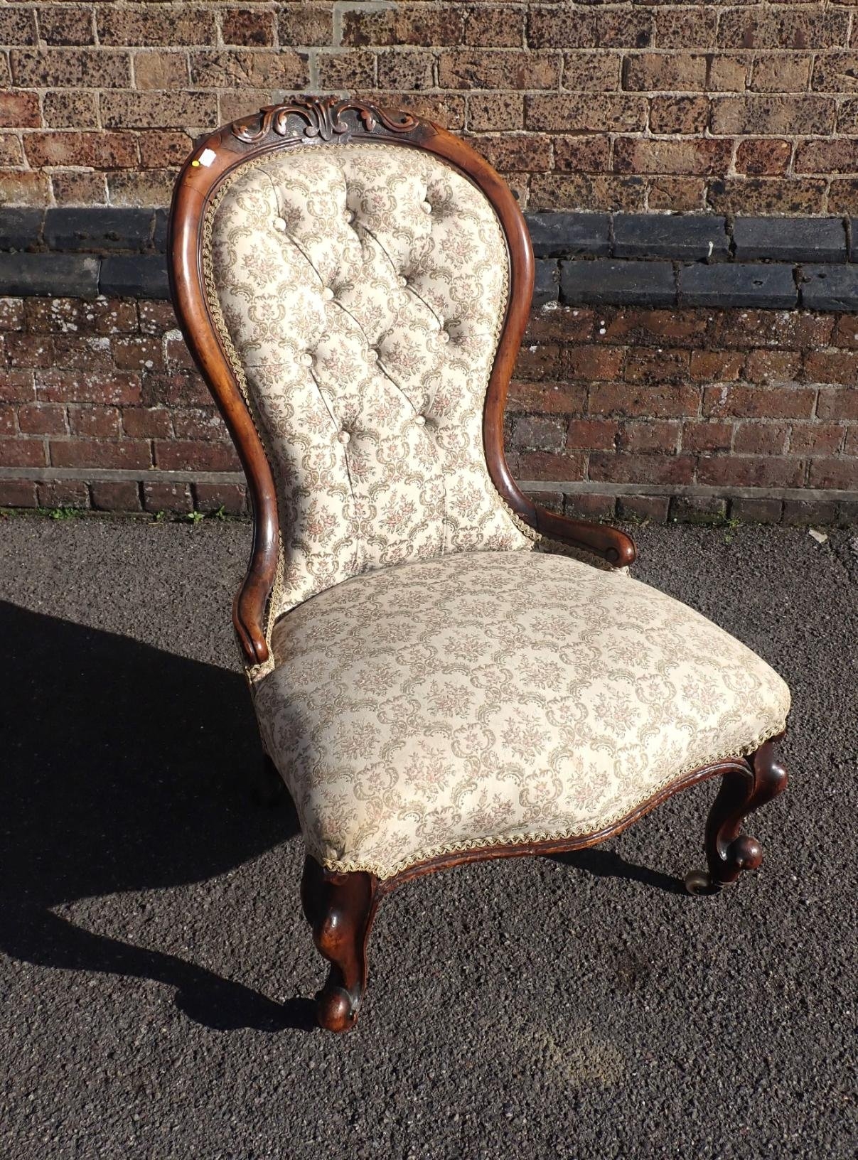A VICTORIAN WALNUT SPOONBACK NURSING CHAIR