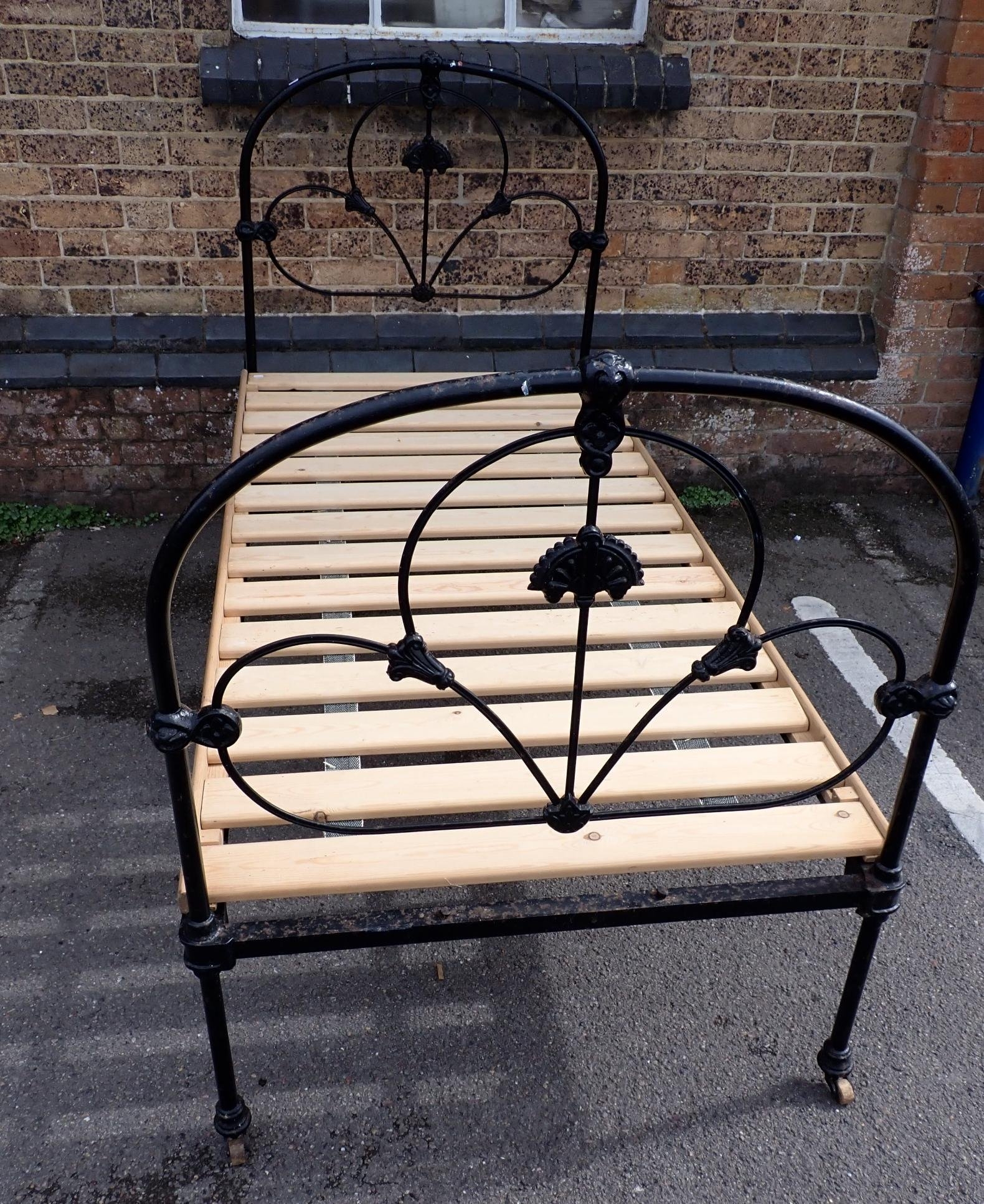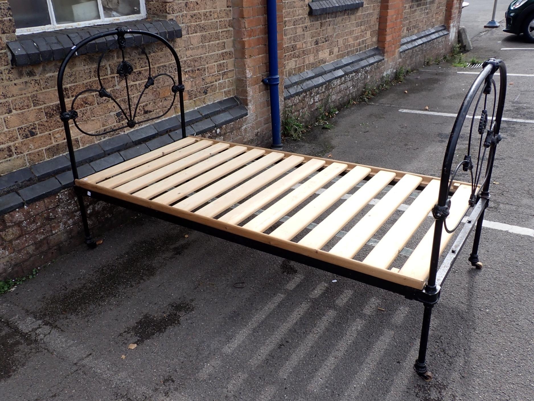 the side rails extended to 190cm, and fitted with modern wooden slats, 93cm wide