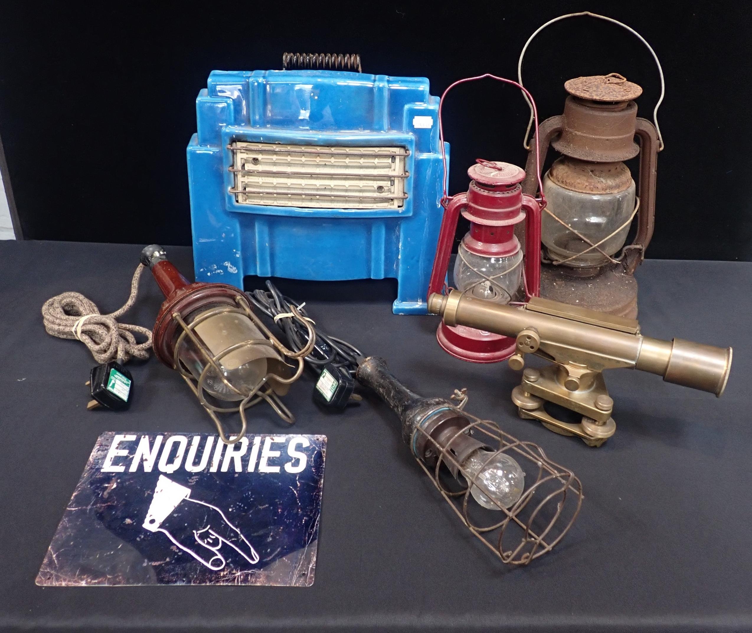 (sold as a collectible only) with two other vintage electrical lights, two oil lamps, a mounted scope and a sign. (all untested) (7)