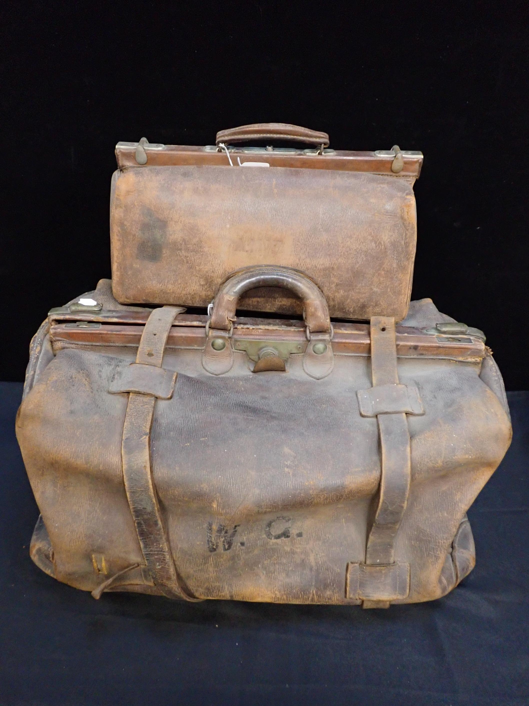 marked 'WG', formerly belonging to Warren C. Gillman, O.B.E. (1863-1929), General manager (Egypt), for Thomas Cook & Son, 66cm long, with another smaller Gladstone bag, and a Corona portable typewriter (a/f) (3)
