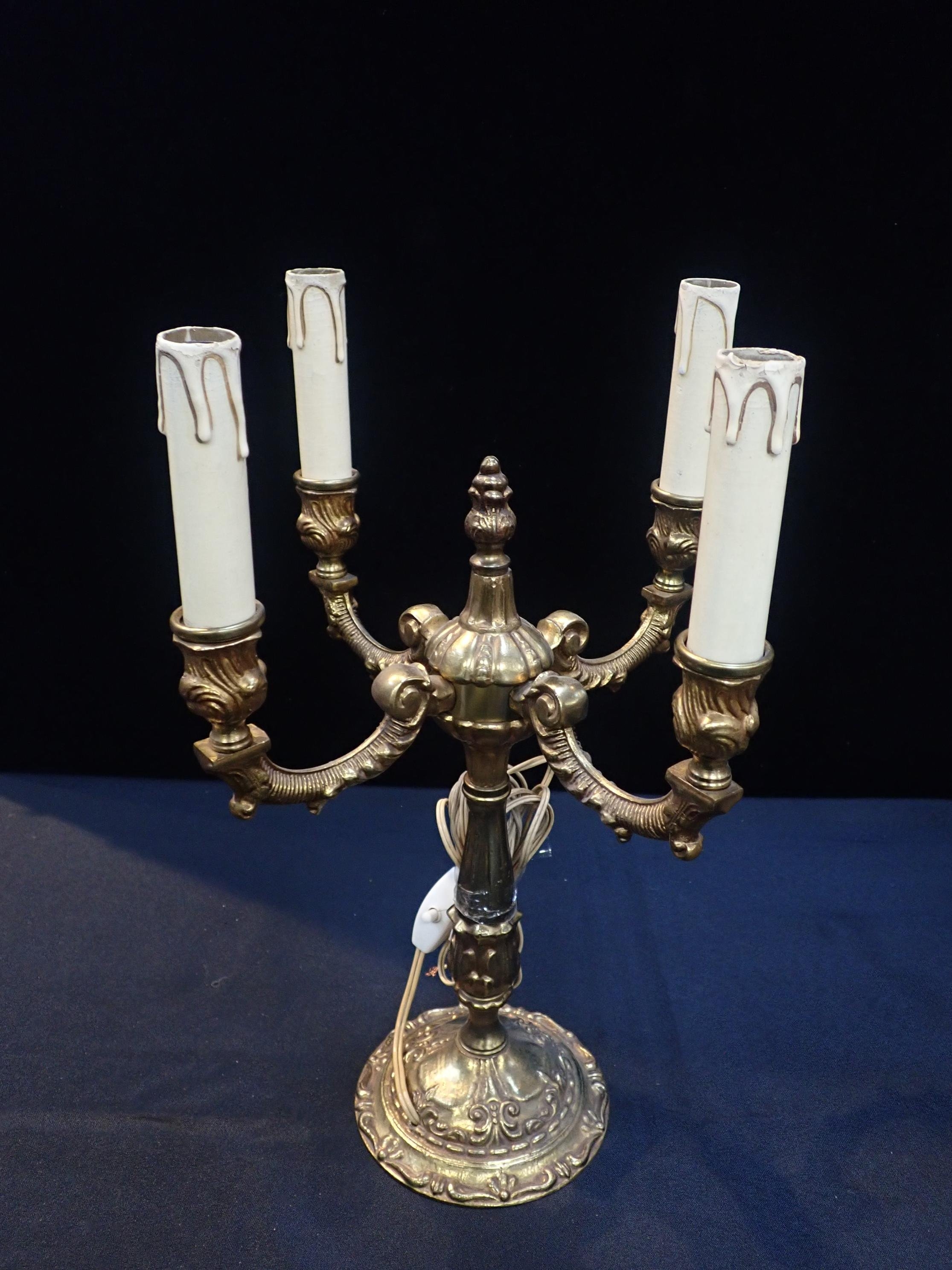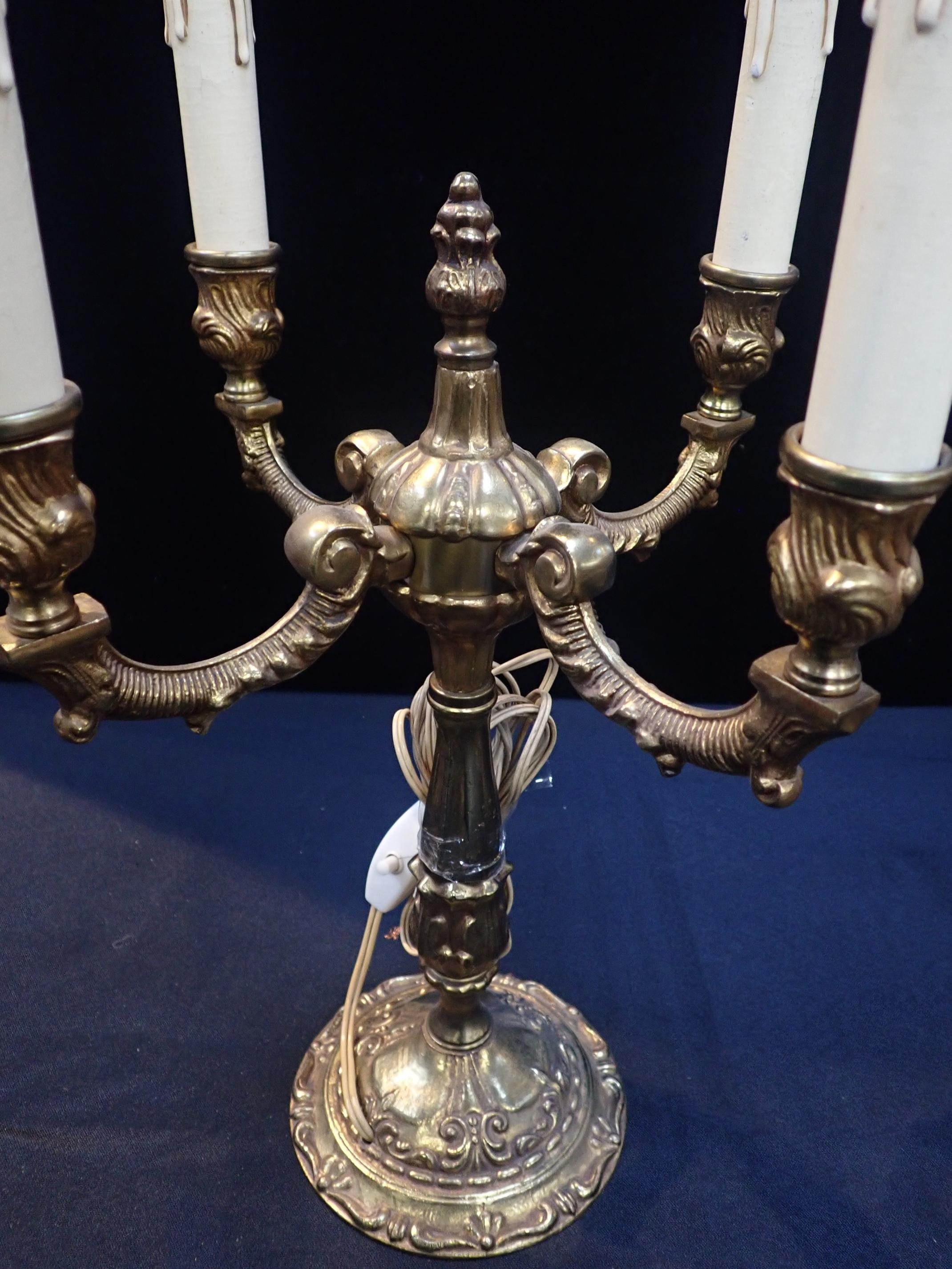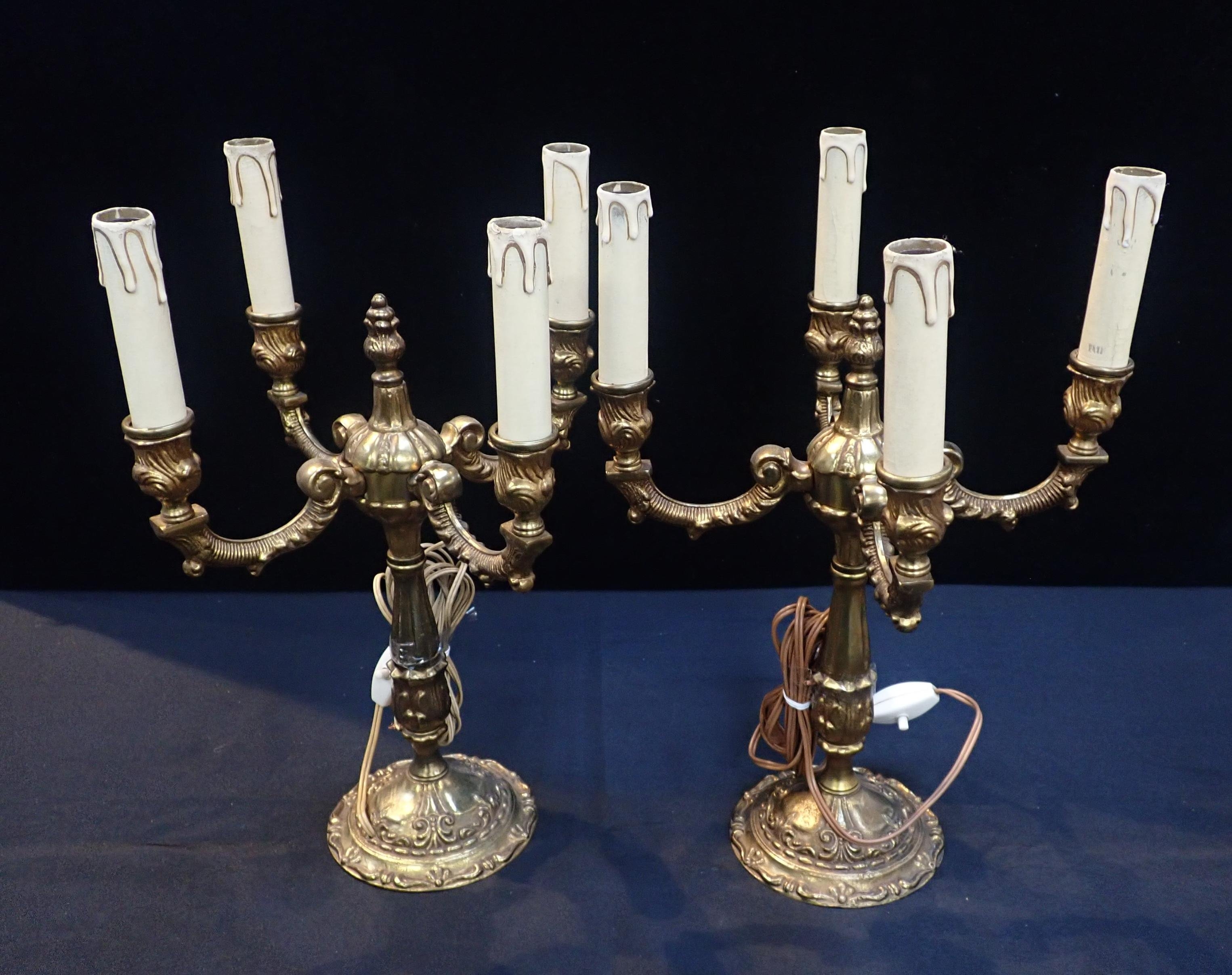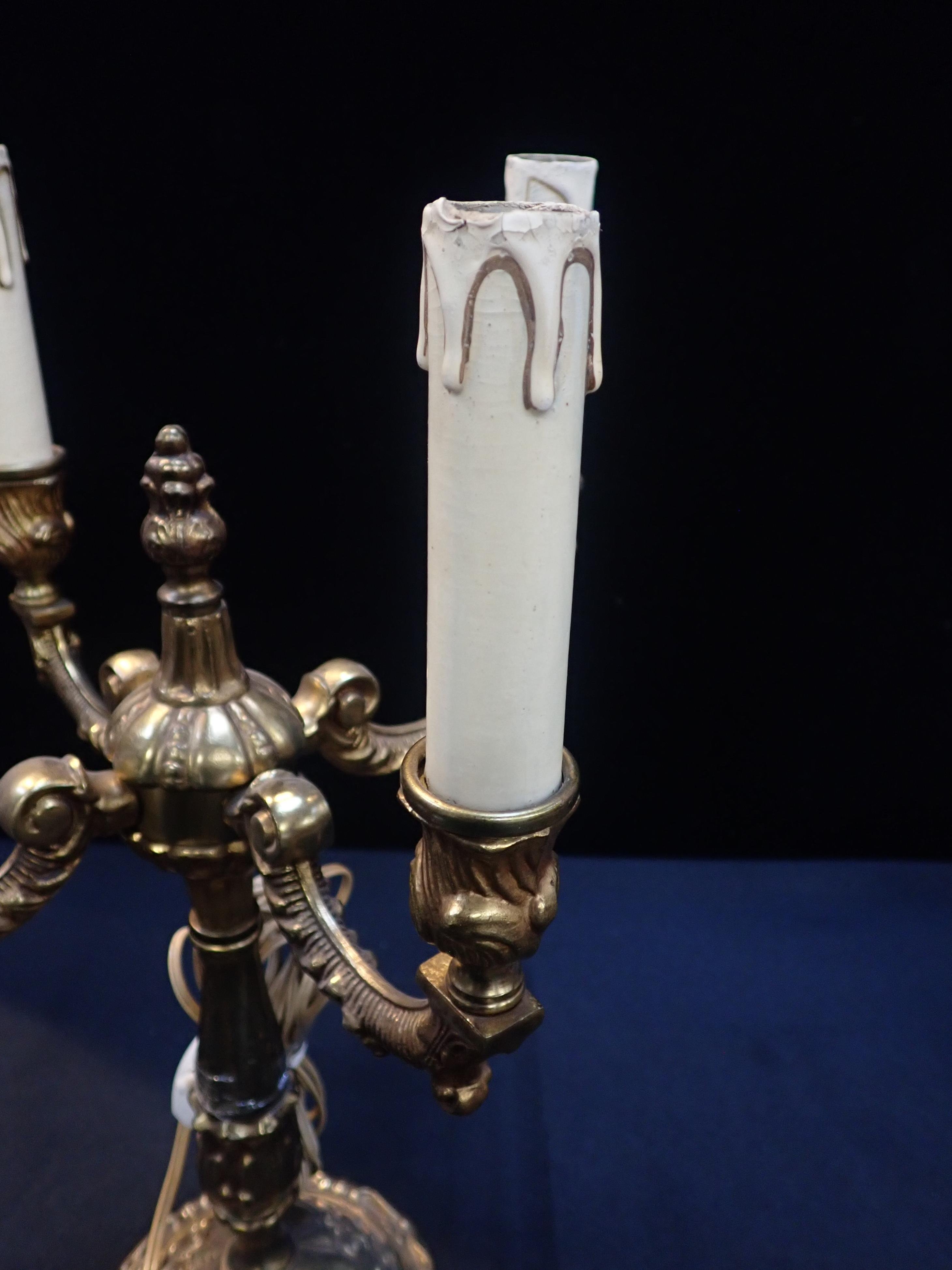 of 18th Century design, the sconces with faux candle fitments, each 41cm high (require rewiring) (2)