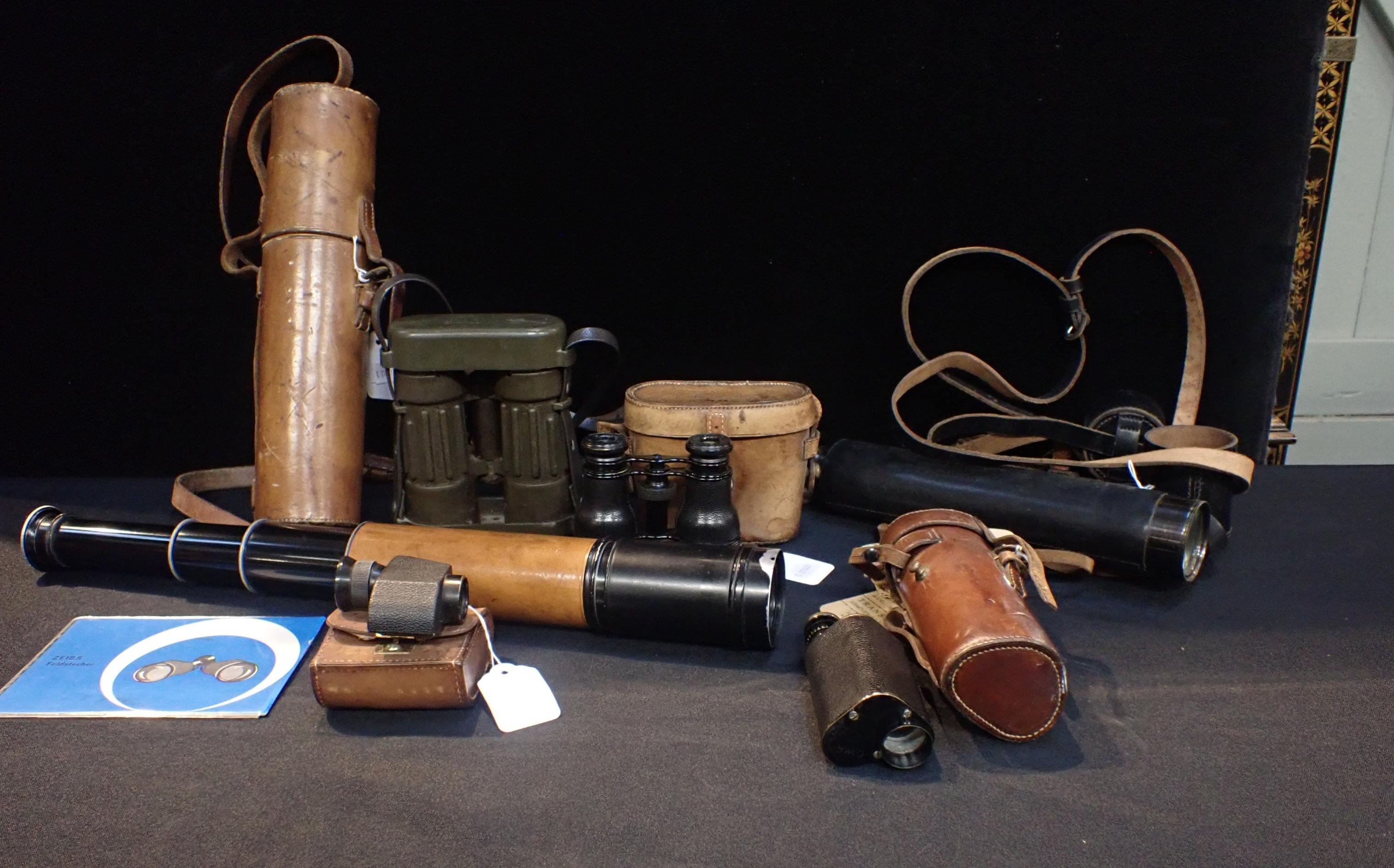 with a Ross monocular, also cased, binoculars and other optical equipment