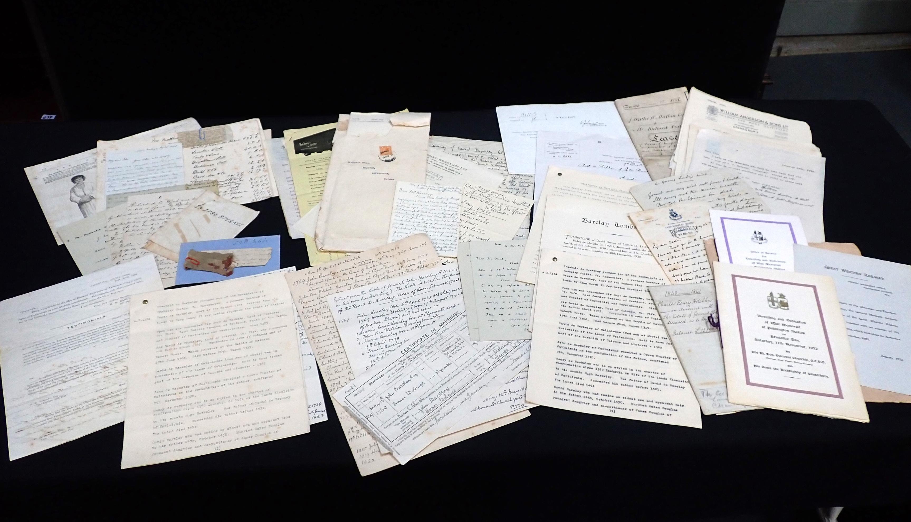 a fragment of crimson and gold cloth attached to a label reading; 'Dear Miss Whish, this is a bit of the Russian flag that was waving proudly at the Redan before the English took it. It did not wave long after'; with a quantity of papers relating to the Whish family, Fulford Grange, Kingston, Nr. Taunton, and their relations, Barclay