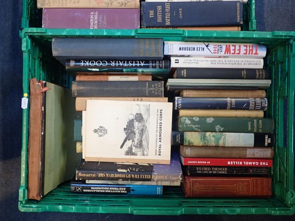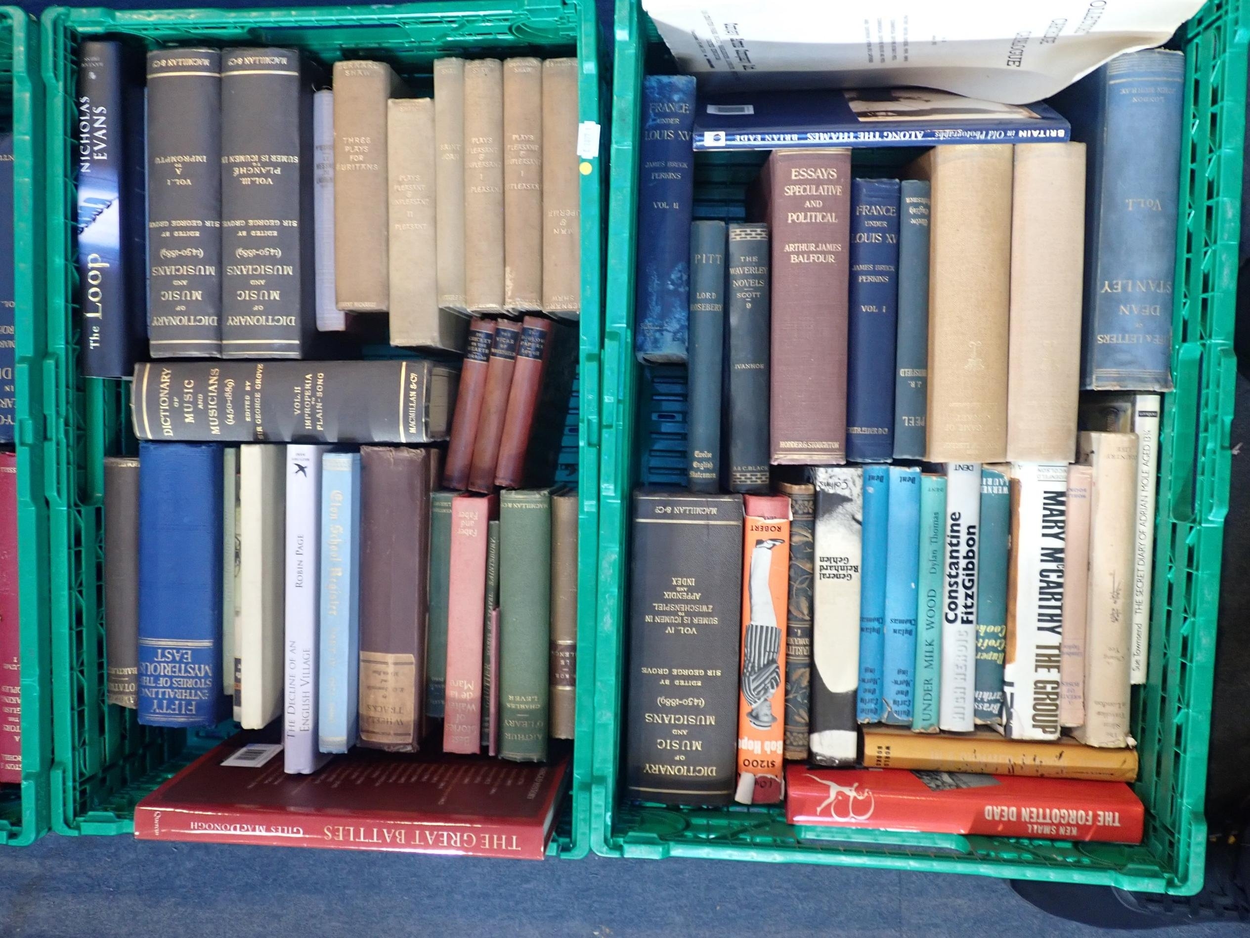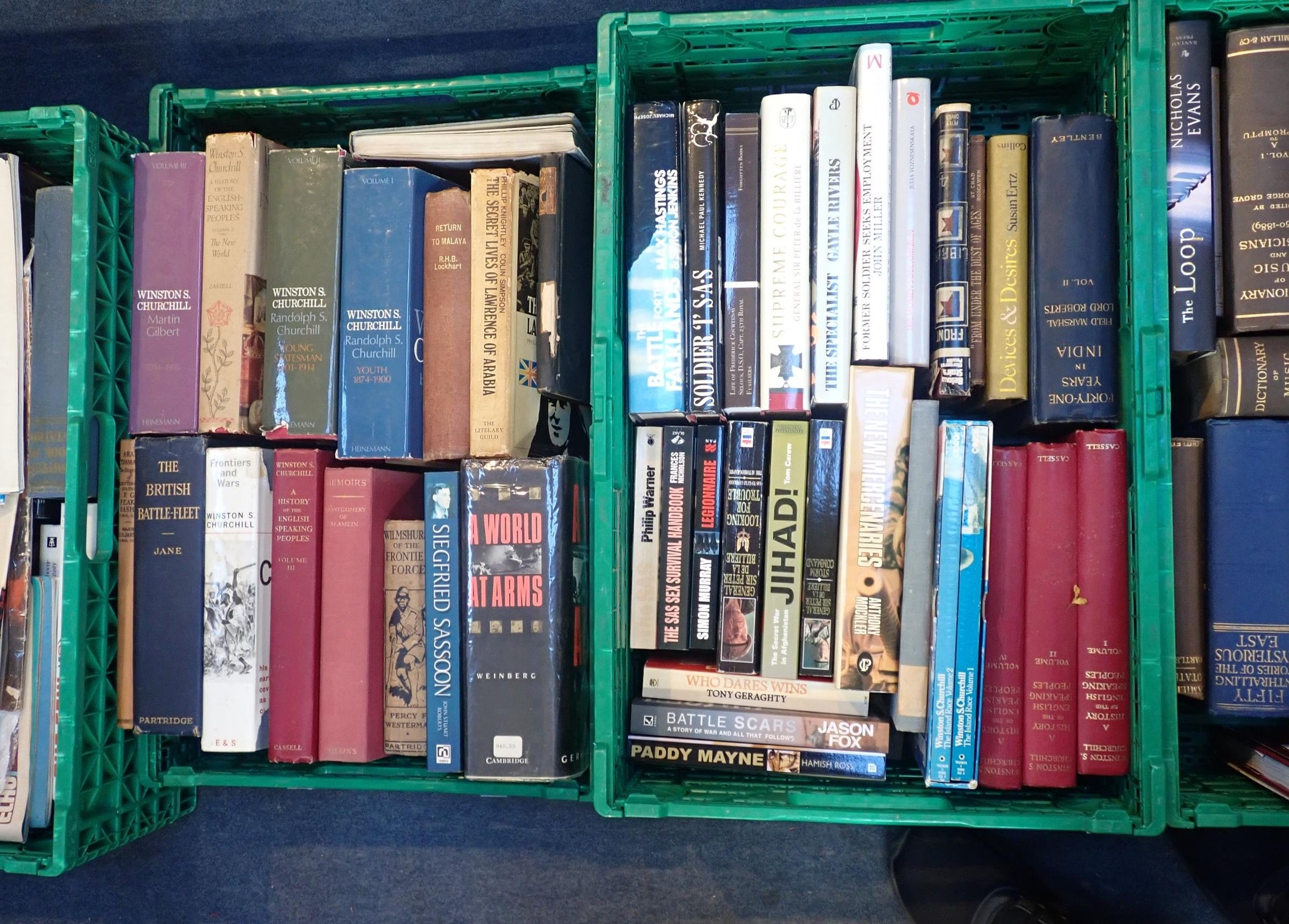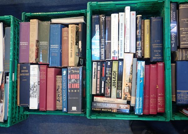 including works by Winston S. Churchill, etc, and other books (5 green plastic trays)