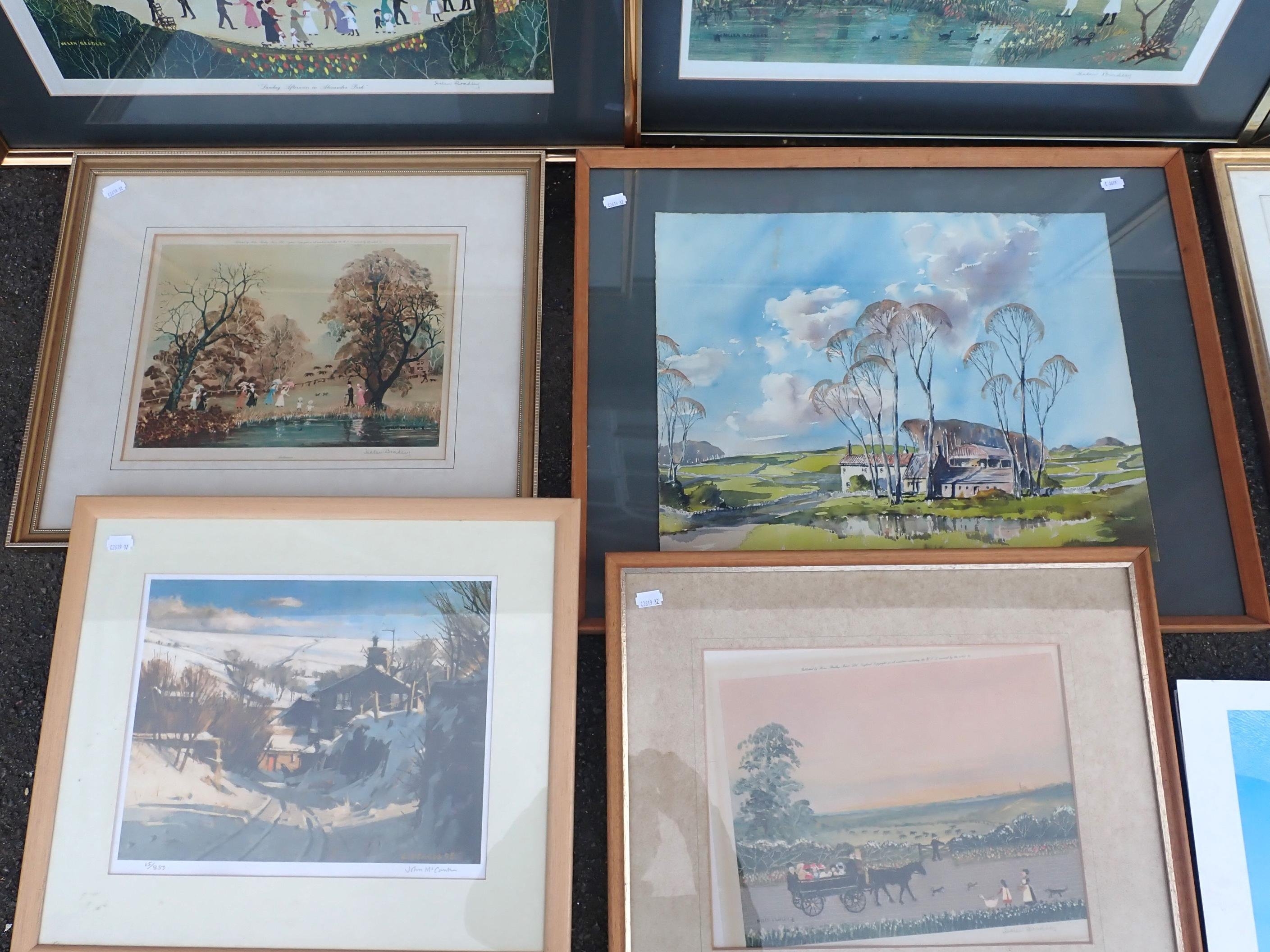published by Henry Dunn (with blind stamp), 92/850 (faded), with other pictures and prints including several Helen Bradley prints (some unframed items)