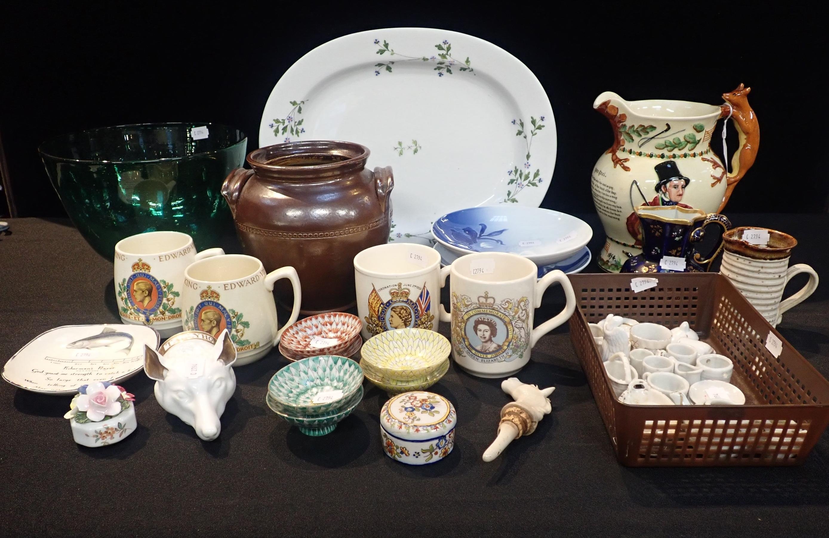 (a/f) a Davenport blue and gilt jug, and other ceramics and glass, including a musical jug, miniatures, commemorative wares etc