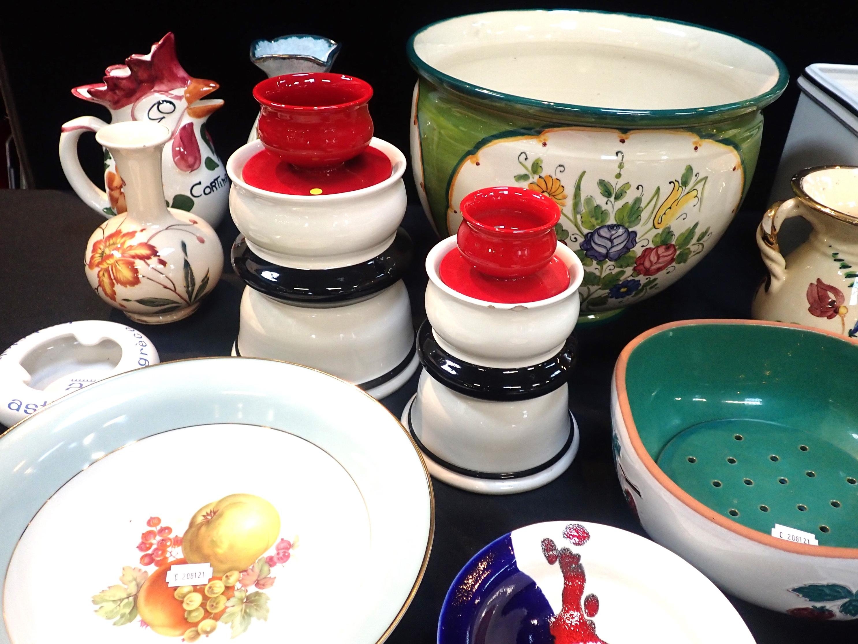 including two Mancioli lidded kitchen jars, 18cm and 22cm high respectively, together a Singer Limoges baby bowl (a/f) and mixed other ceramics (18)