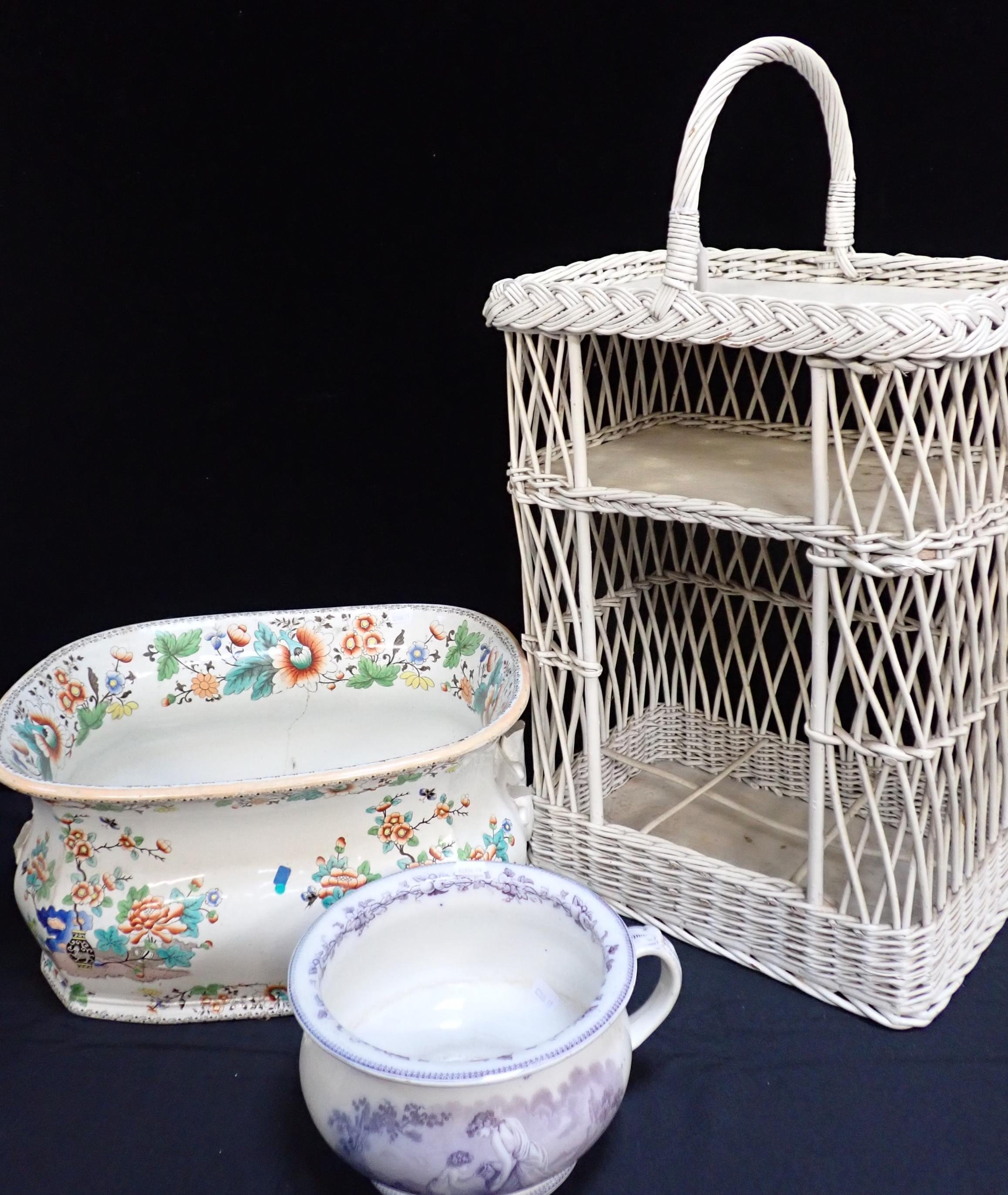 with tray top, a 19th century footbath (a/f), and a chamber pot decorated with 'PHIZ' (H.K.Browne) transfers (3)