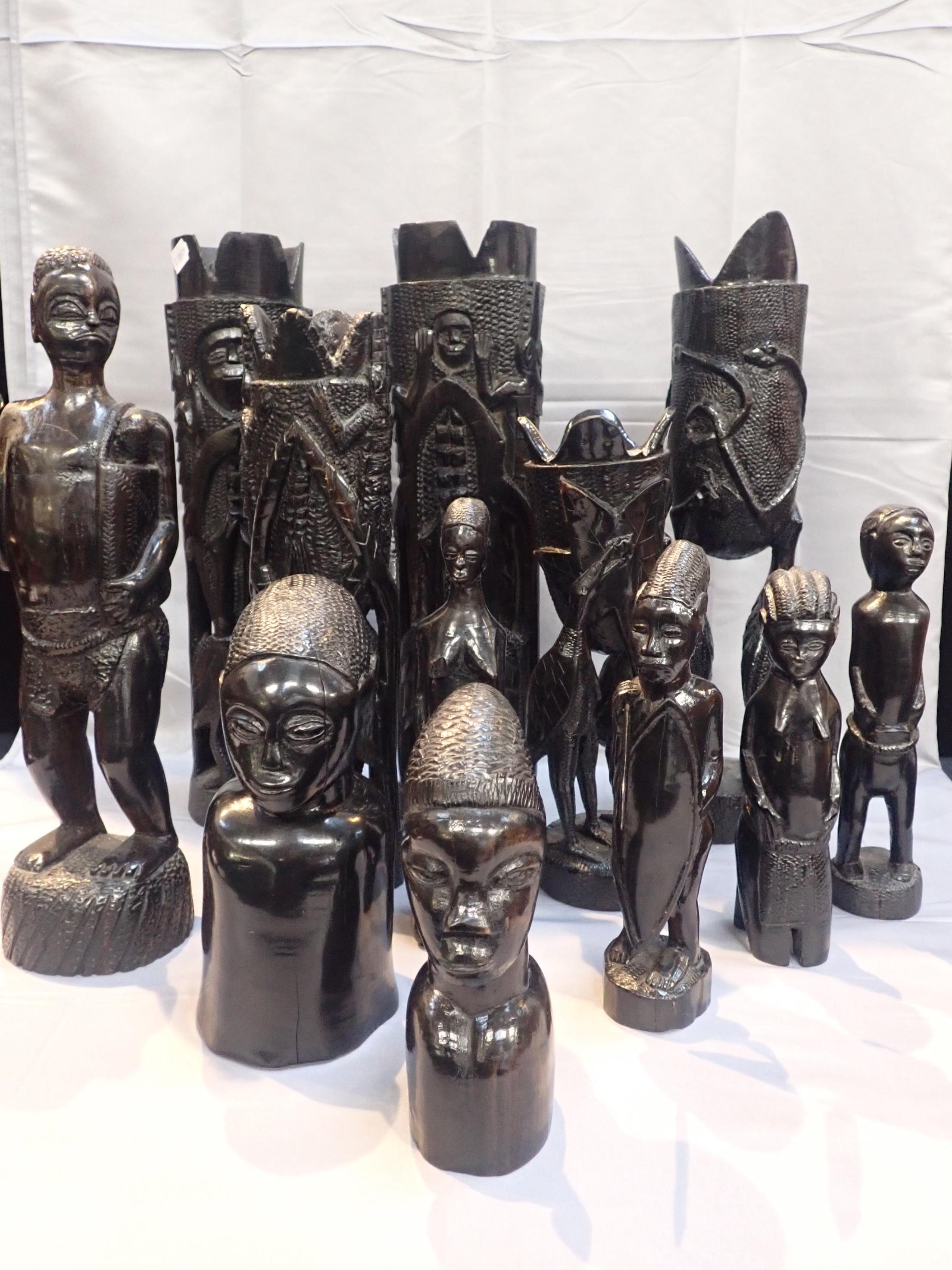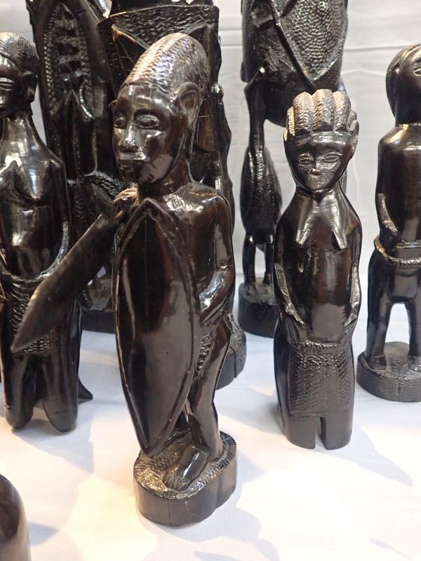 comprising five vases of similar design, each modelled with bird supports and seven human figures, various sizes (12)